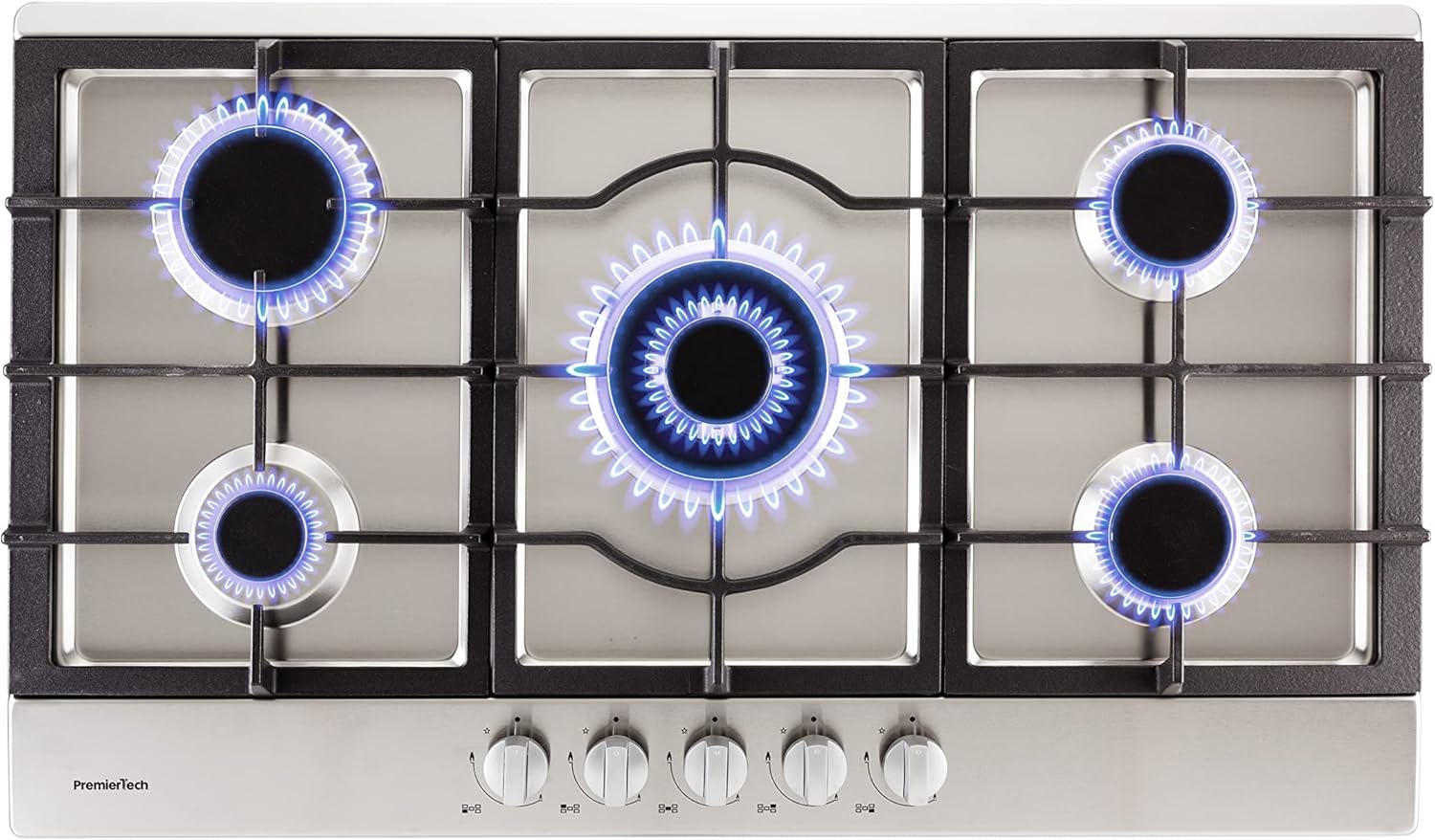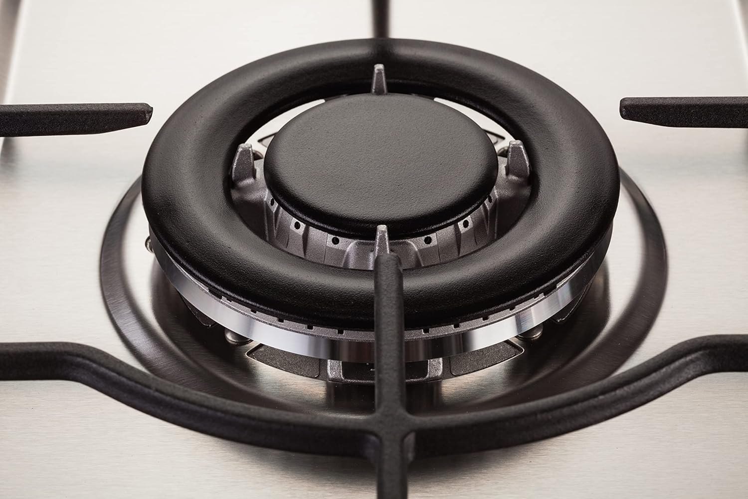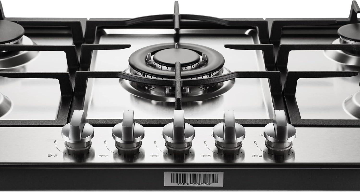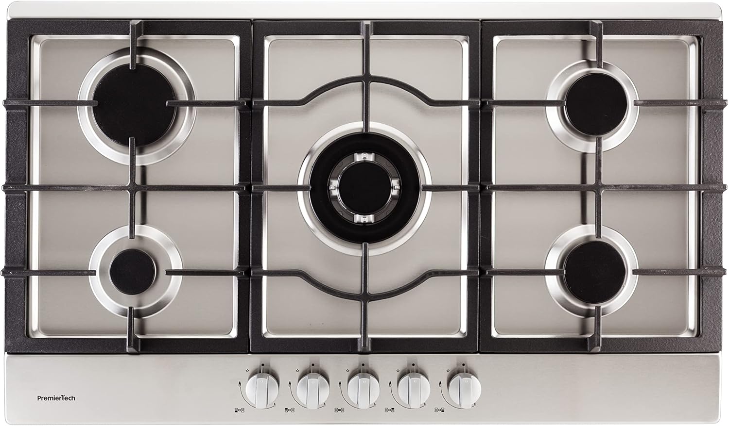 PremierTech Piano Cottura a Gas 5 fuochi, 75 cm, Inox, Bruciatore Centrale, Supporti in Ghisa, predisposto Metano e kit ugelli GPL inclusi, PC5G75