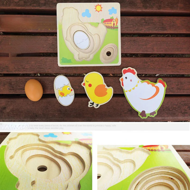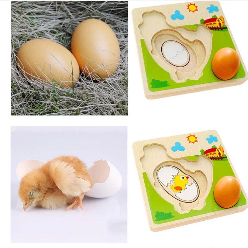 Puzzle 3D in legno Pulcino che cresce le galline che ponde le uova Processo Puzzle Apprendimento Educazione Giocattoli Montessori