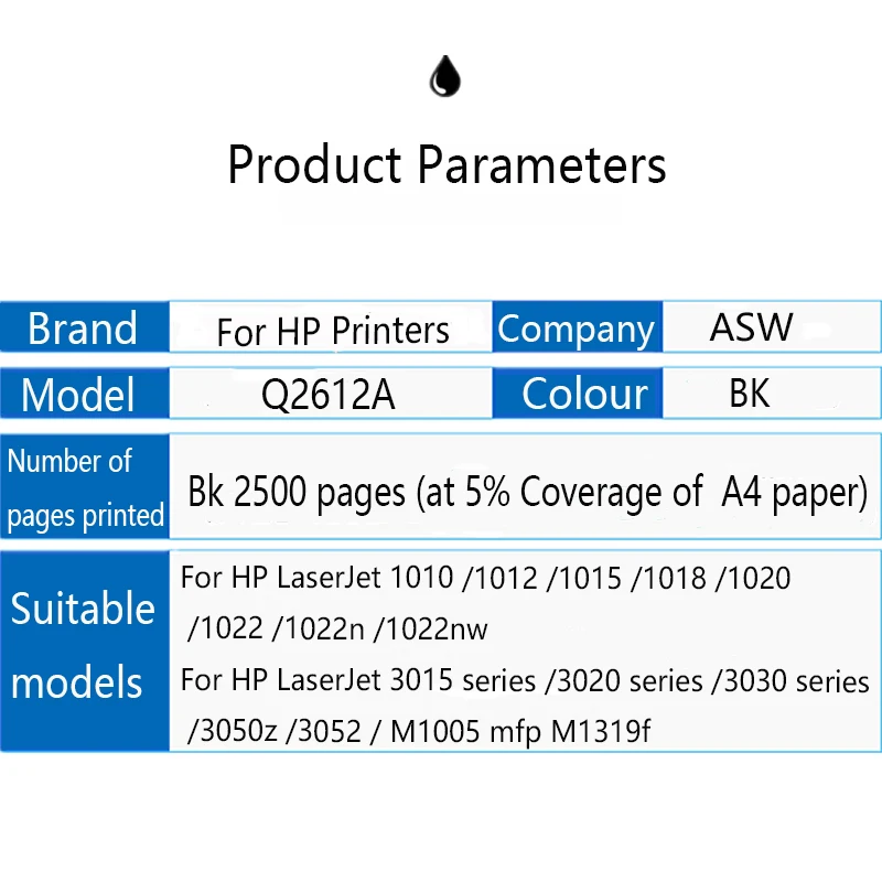Q2612A q2612 12a 2612 toner cartridge 2612a for HP LaserJet 1010 1012 1015 1020 3015 3020 3030 3050 1018 1022 1022N printer