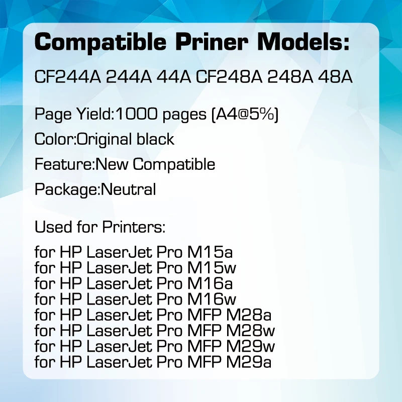 Qualicom 48A 44A CF248A CF244A Compatible TONER Cartridge for HP LaserJet Pro M15a M15w M16a M16w MFP M28a M28w M29w M29A