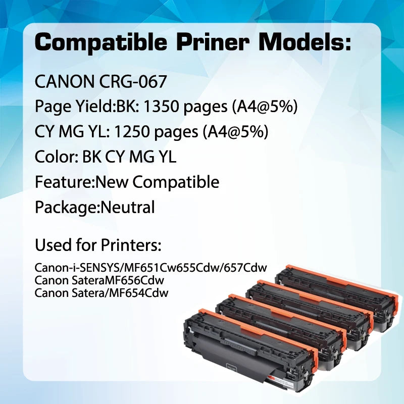 Qualicom CRG067 CRG-067 with chip compatible toner cartridge for CANON i-SENSYS MF651Cw 655Cdw 657Cdw Satera MF656Cdw MF654Cdw