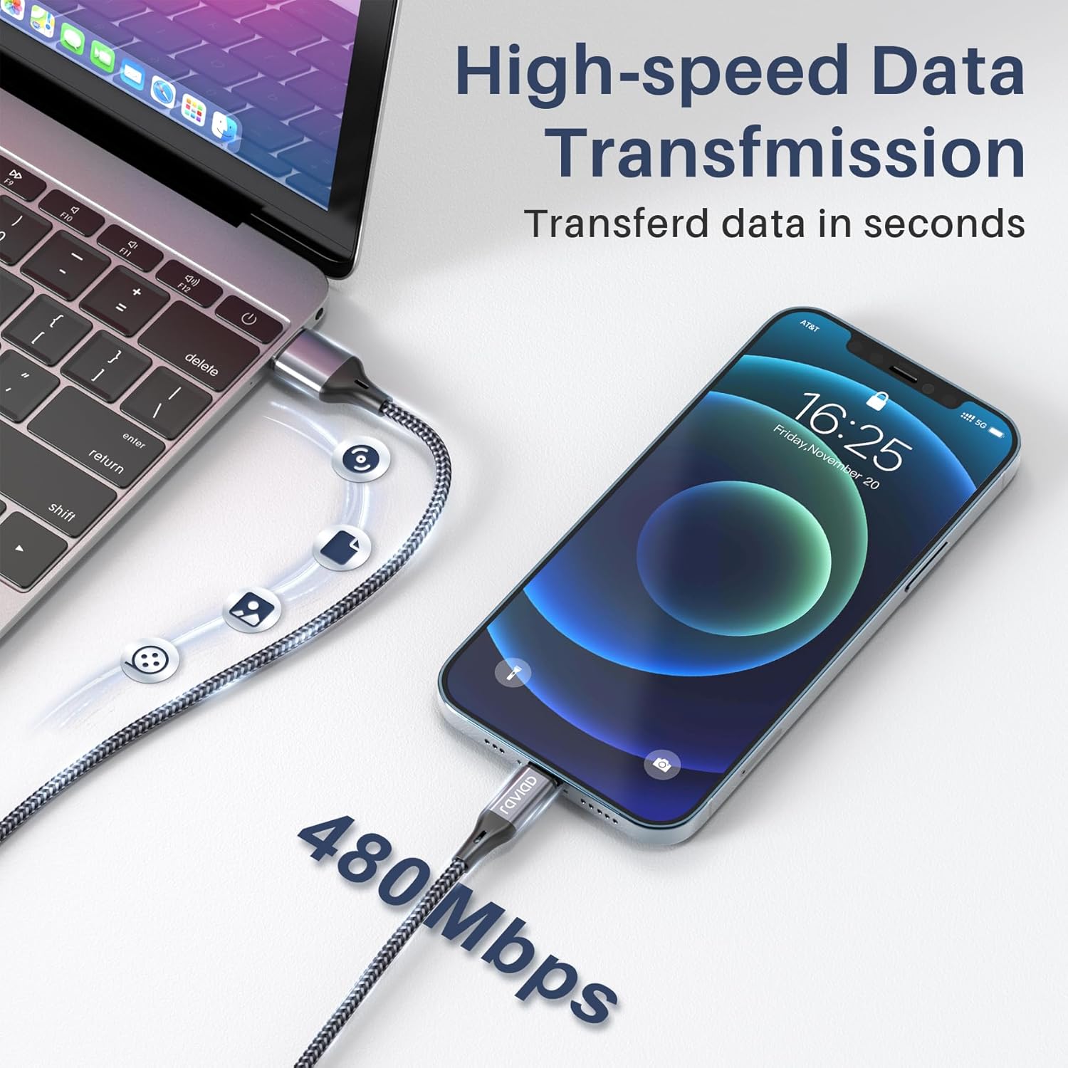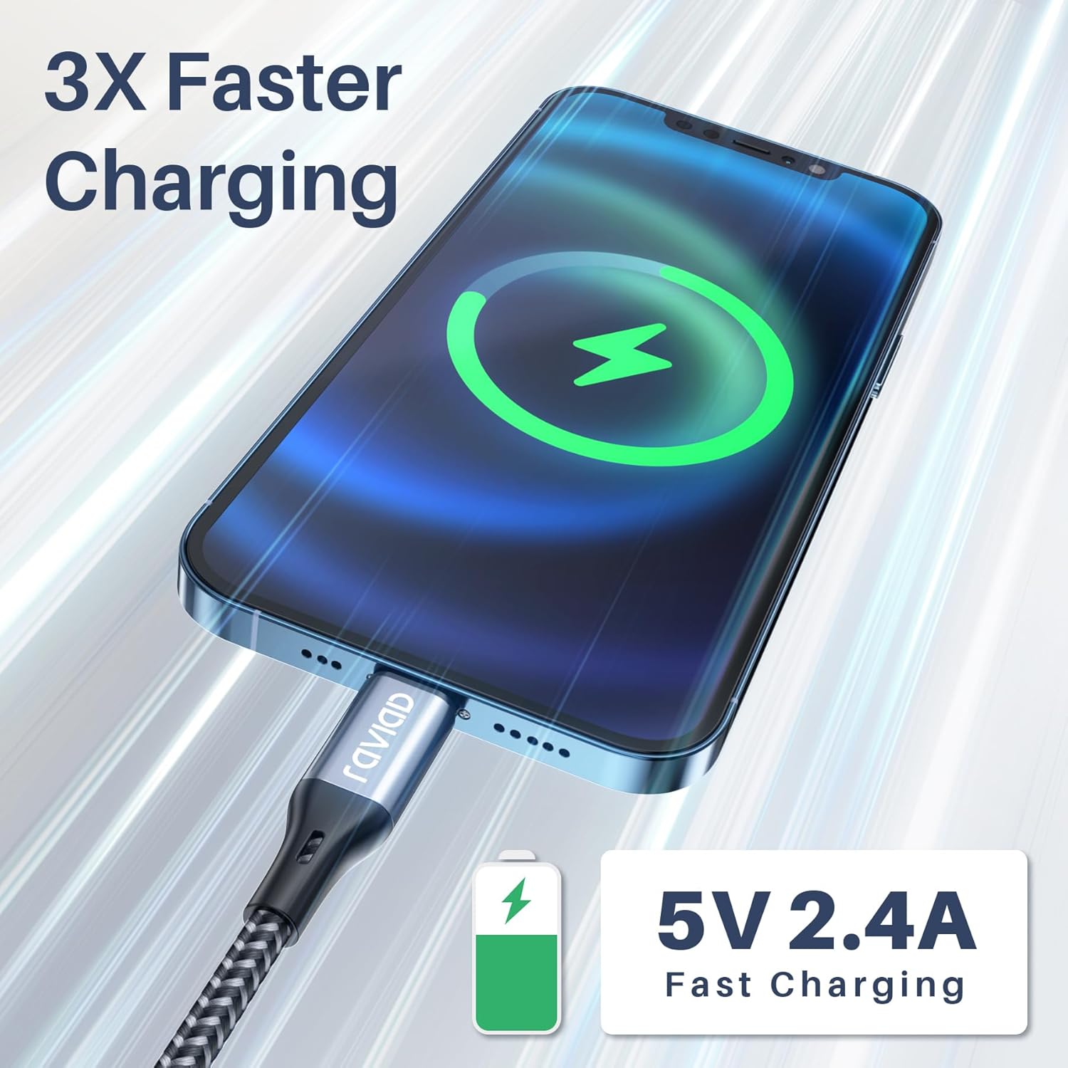 RAVIAD Cavo iPhone, [Certificato MFi] 1.2M Caricabatterie iPhone Carica Rapida Nylon Cavo iPhone per iPhone 14/13/12/11/Pro/Pro Max/X/XS/XS Max/XR/8/8 Plus/7/7 Plus/6s/6s Plus/6/6 Plus/5/5c/5s