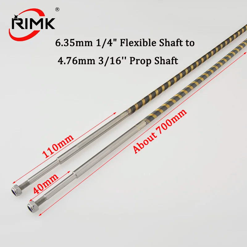 RC Boat Quality Left/Right 6.35mm 1/4" Flexible Shaft to 4.76mm 3/16'' Prop Shaft About 700mm Flex Cable for Gas Nitro RC Boat