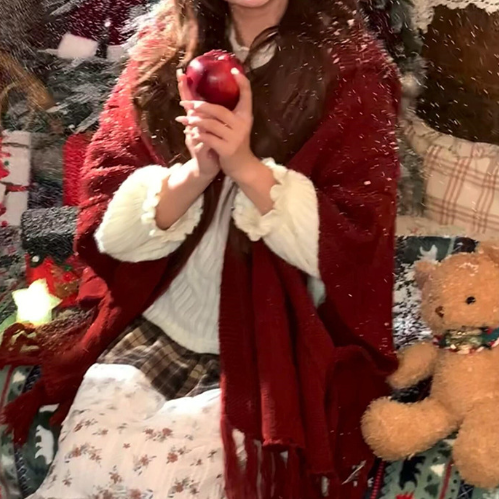 Red Christmas Cardigan Sweater Autumn And Winter Atmosphere Wear
