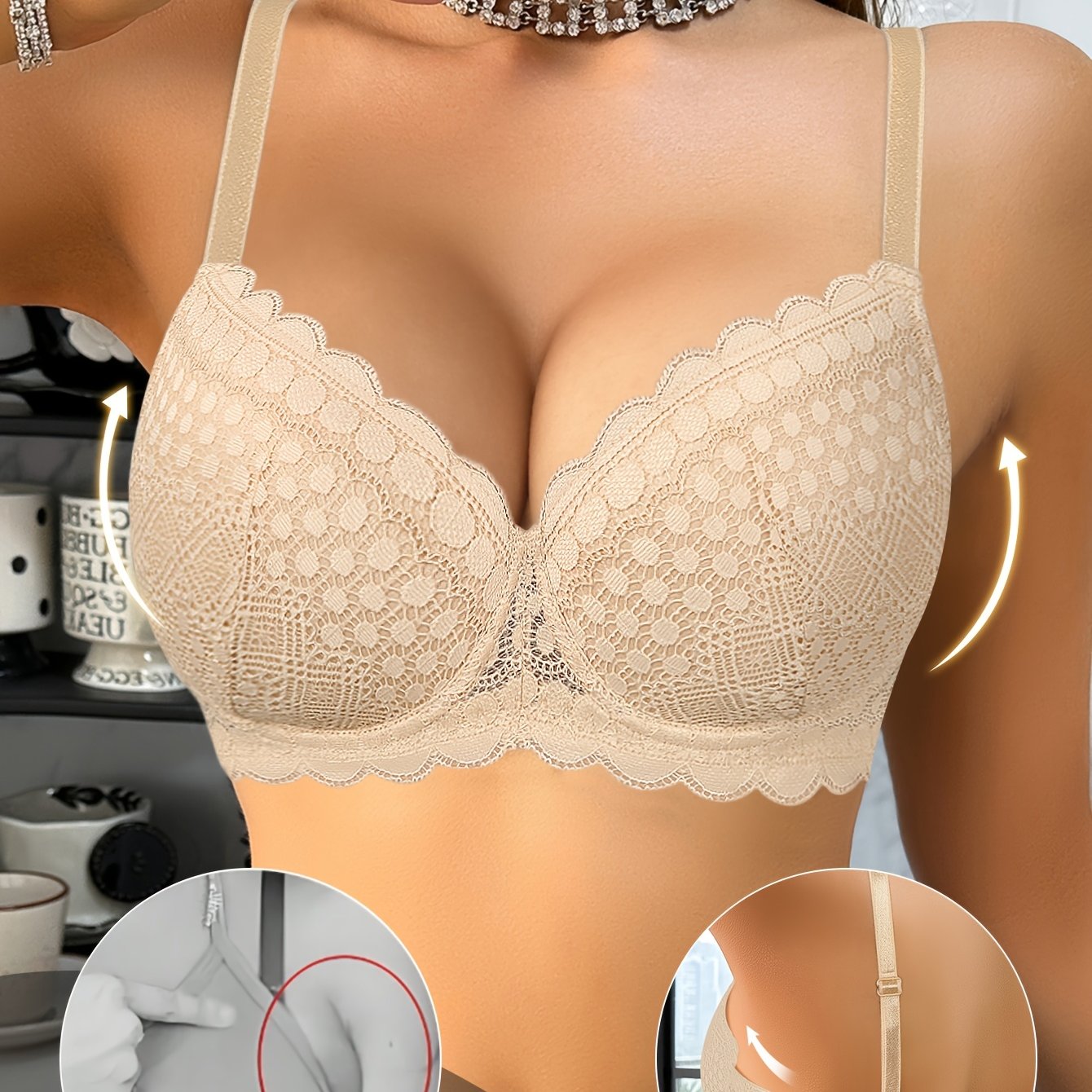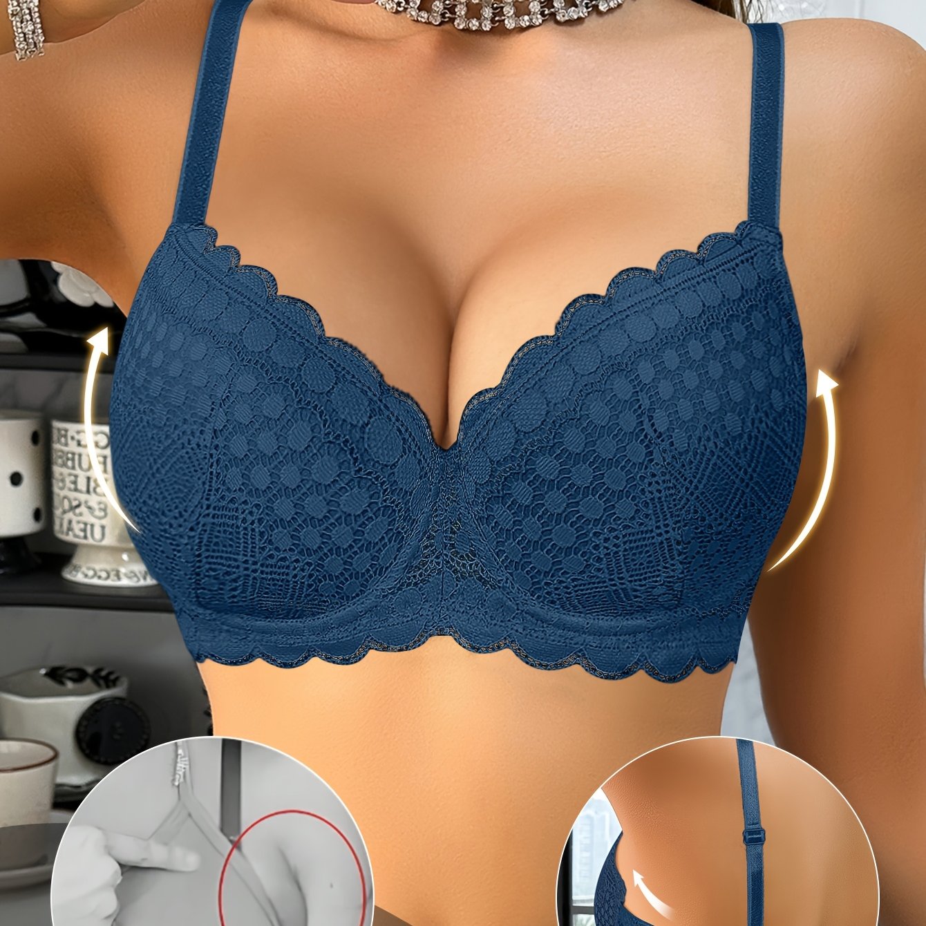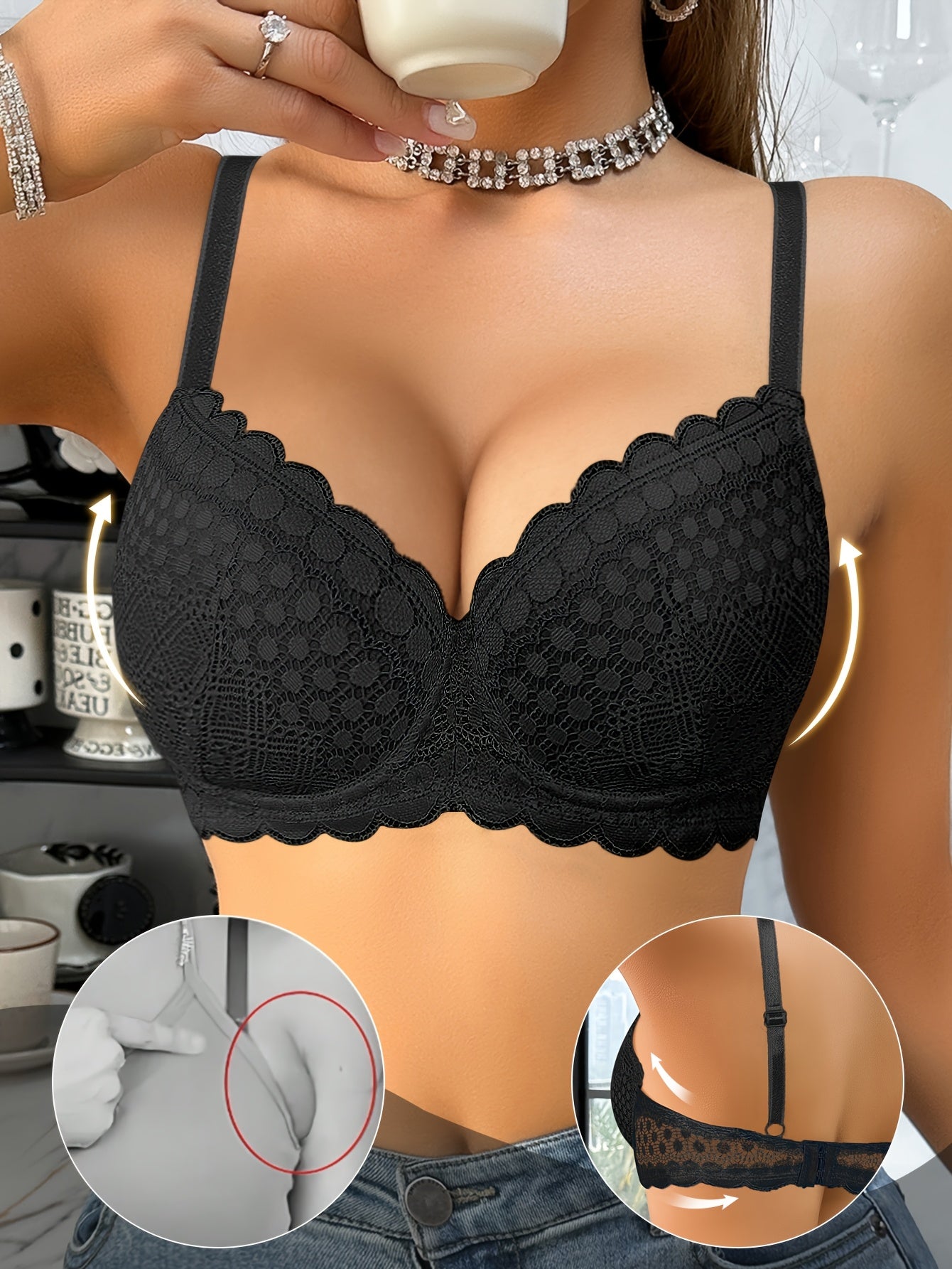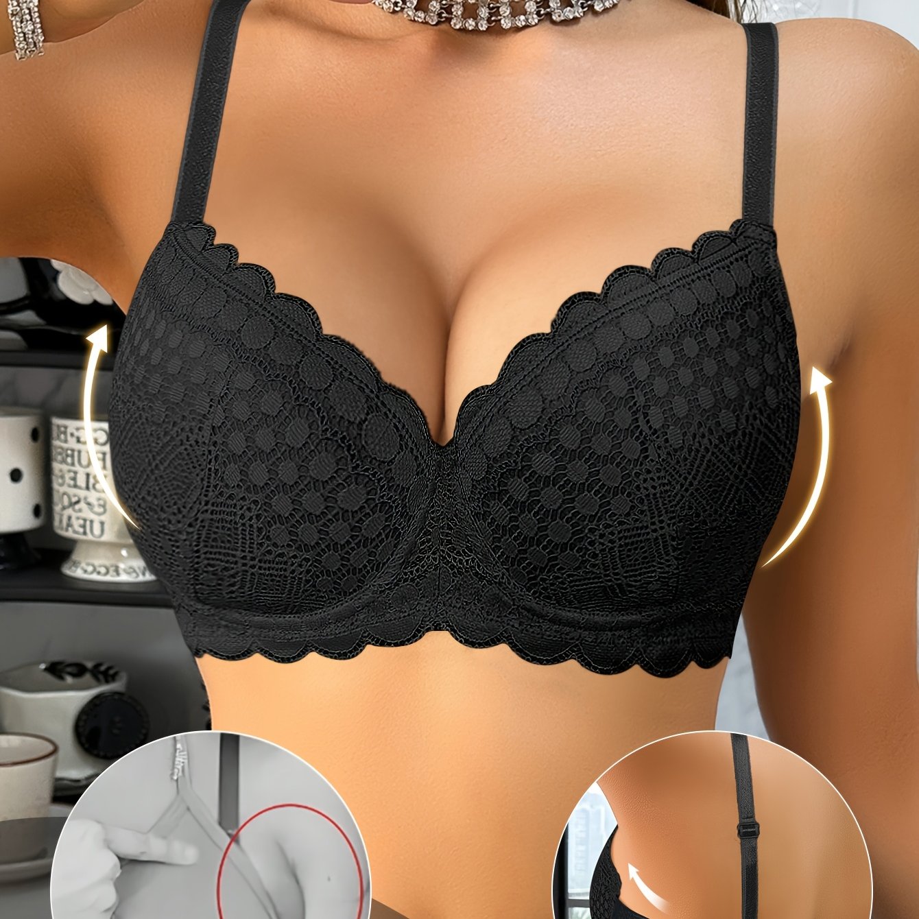 Reggiseno Sexy in Pizzo per Donne con Raccolta e Sostegno per Seno Piccolo