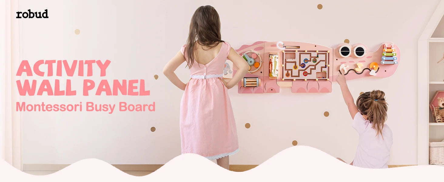 Robotime Robud Tavola in legno occupata Giocattolo per l'apprendimento Montessori Centro attività montato a parete con labirinto di ingranaggi Regali giocattolo in legno