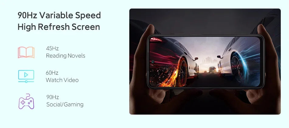 Schermo---------- Display FHD+ da 6,5 pollici 2400x1080P, frequenza di aggiornamento di 90 Hz