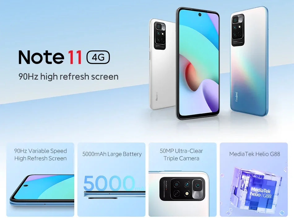 Versione cinese Redmi Note 11 4G, display FHD+ 90Hz, tripla fotocamera AI da 50 MP, batteria da 5000 mAh.