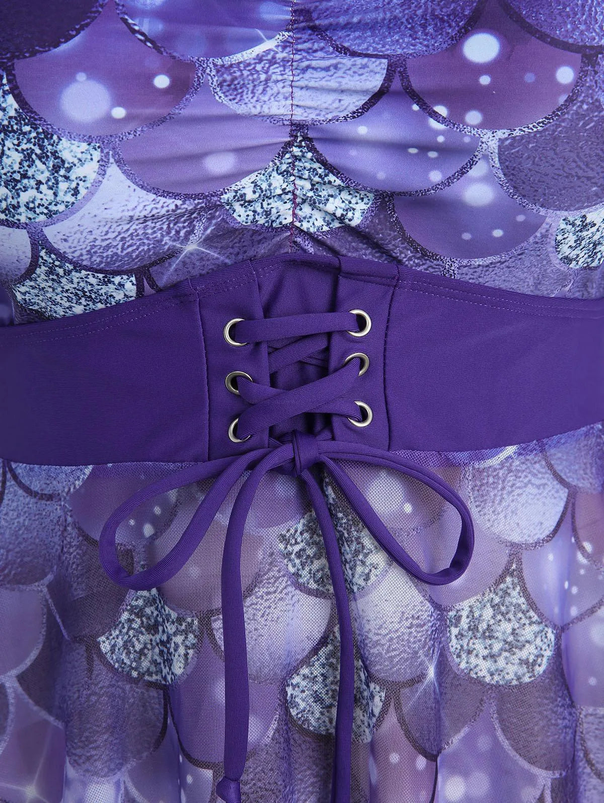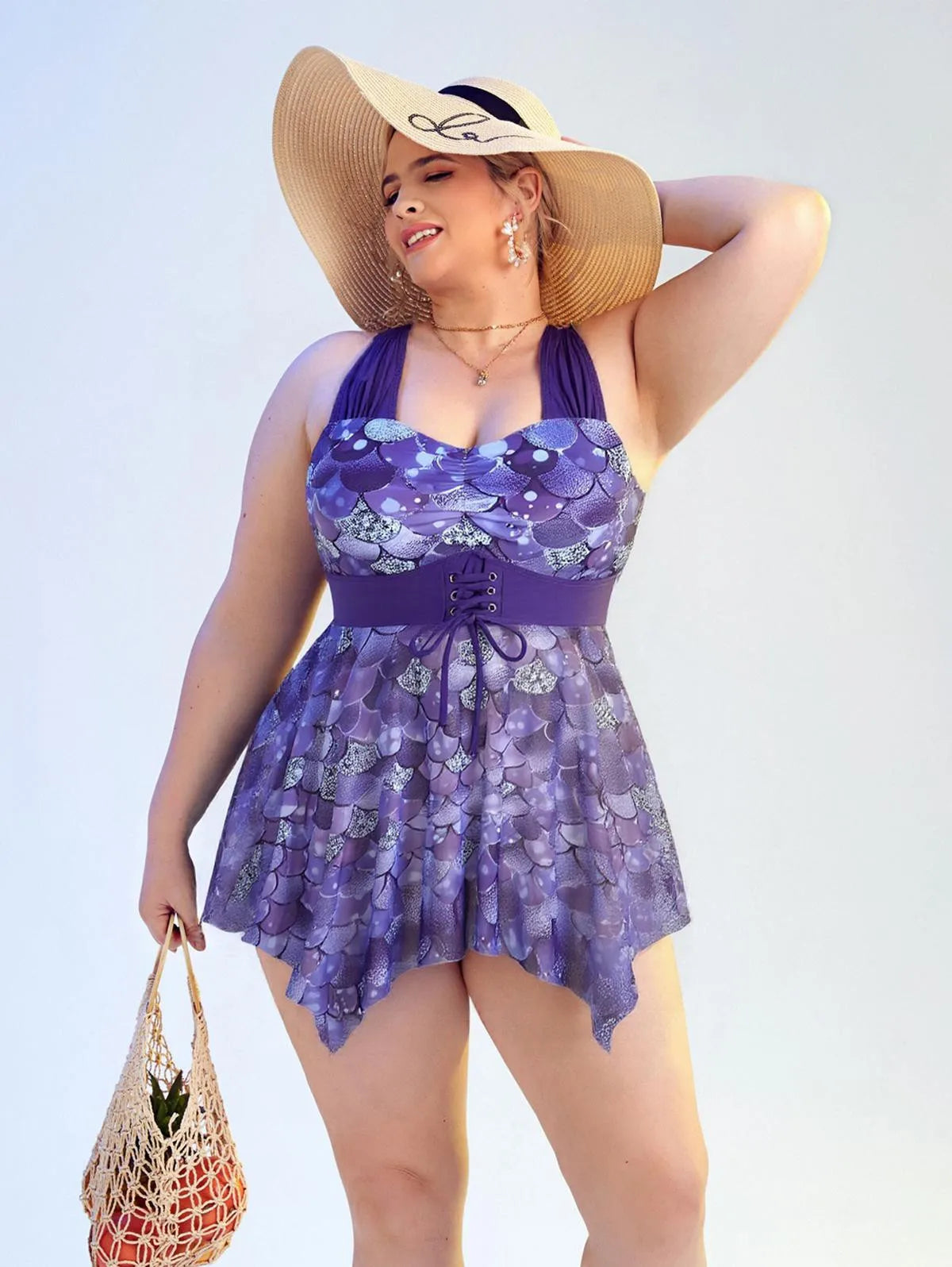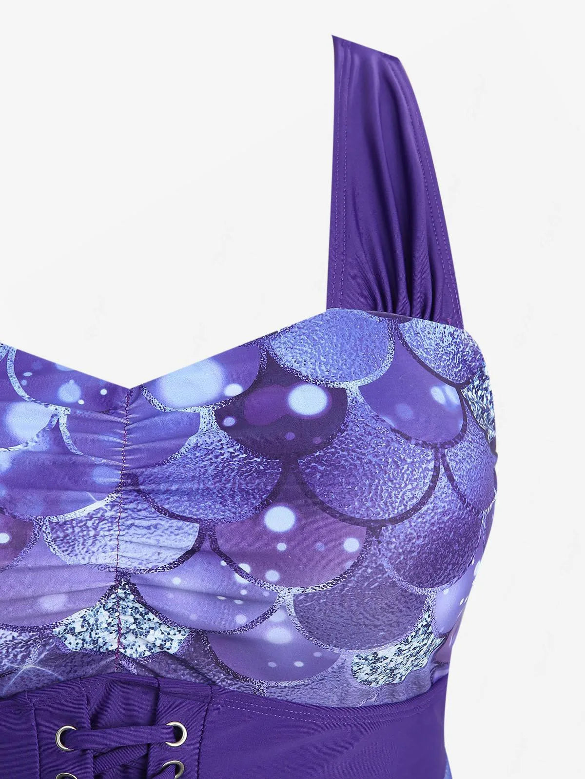 Rosegal Women’s Plus Size Mermaid Print Lace Up Ruched Lattice Crisscross Straps Boyleg Tankini Swimsuit