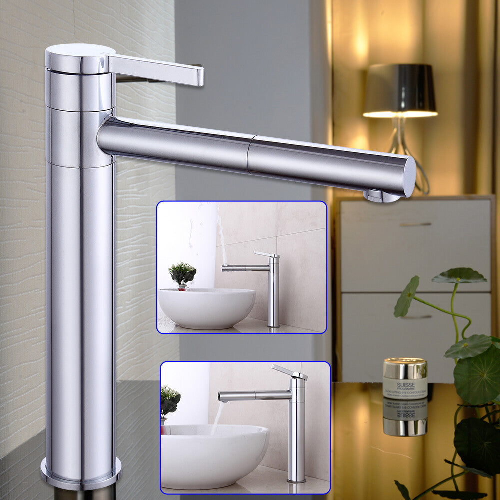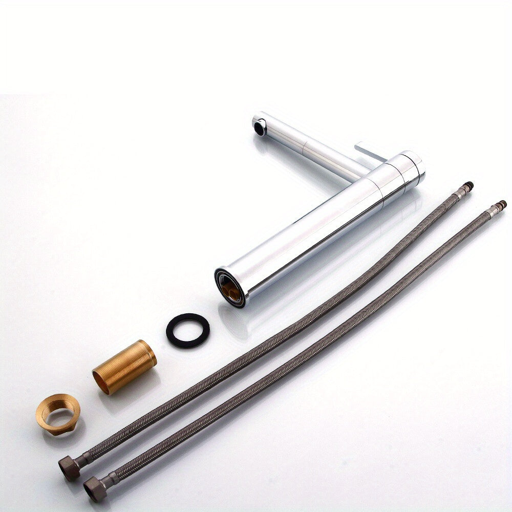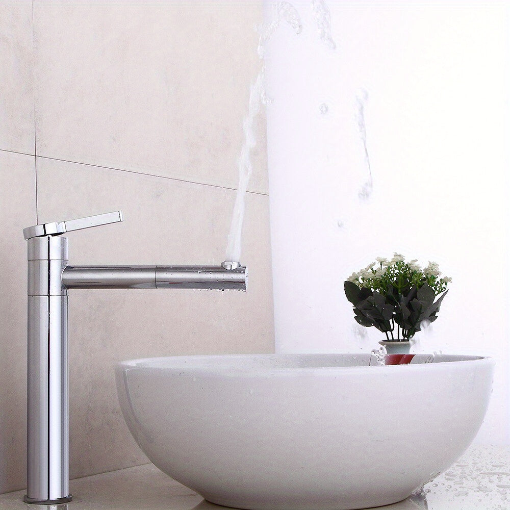 Rubinetto da Bagno Alto Argentato, Monocomando per Lavabo, Miscelatore Rotabile 360° Caldo e Freddo, Valvola Rubinetto