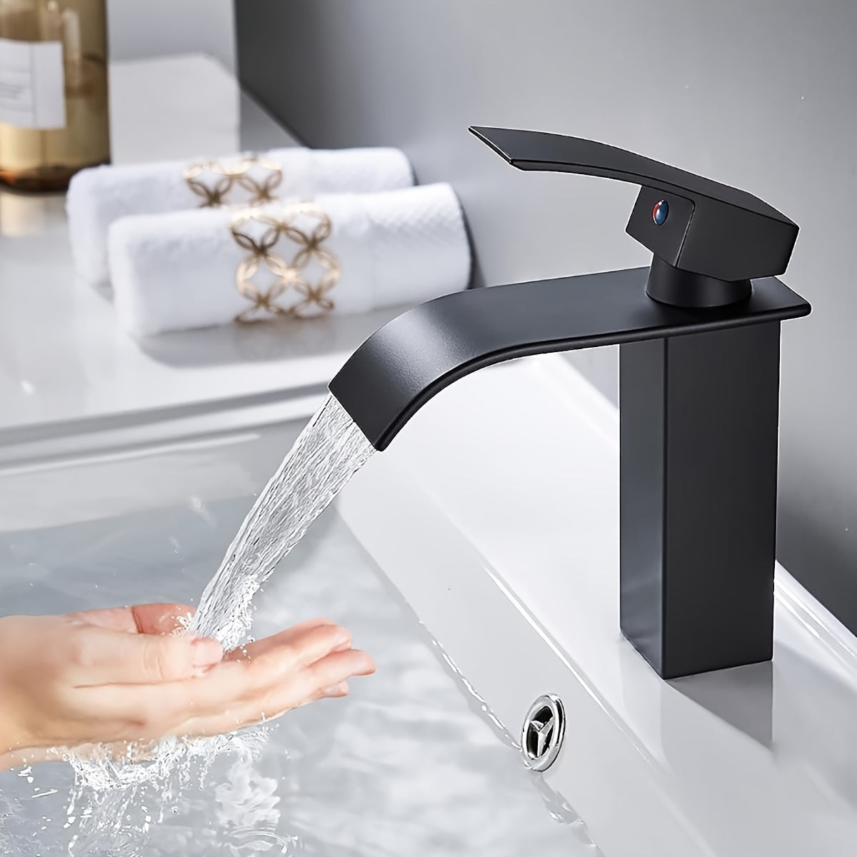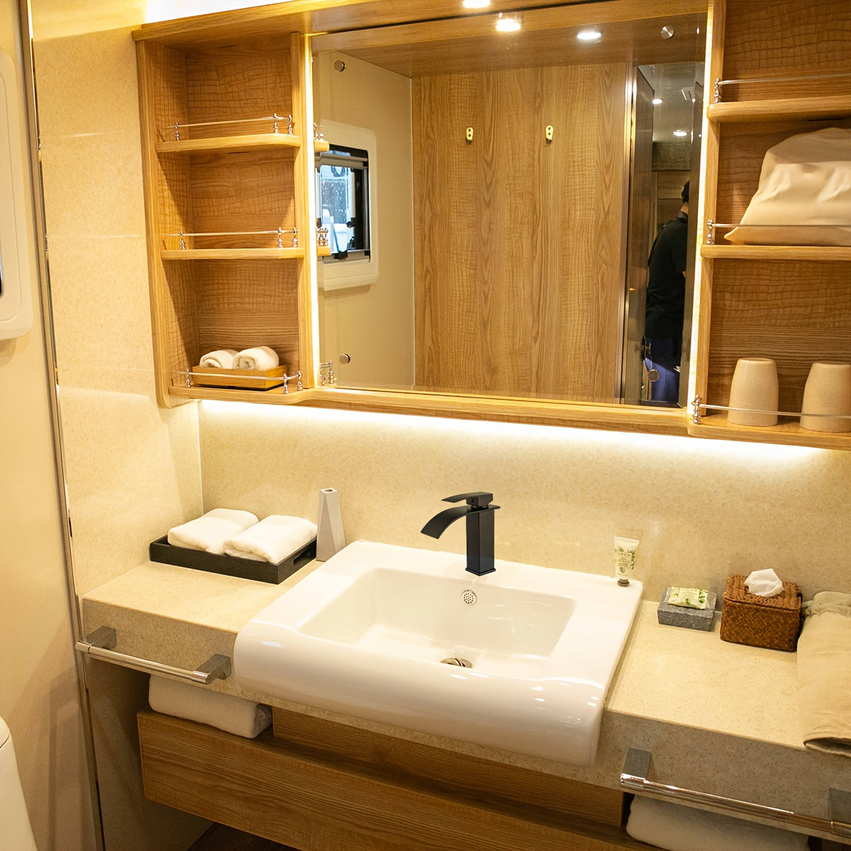 Rubinetto da Bagno in Acciaio Inossidabile con Getto Curvo per Acqua Calda e Fredda, Rubinetto del Lavabo con Nucleo di Rame per Bagni Camper