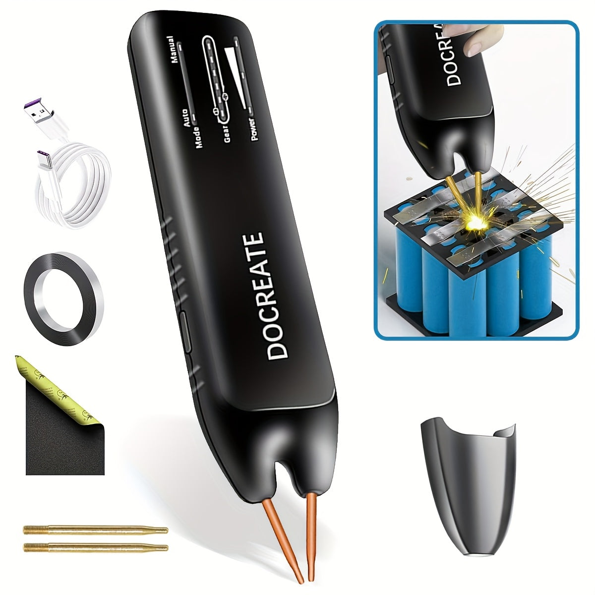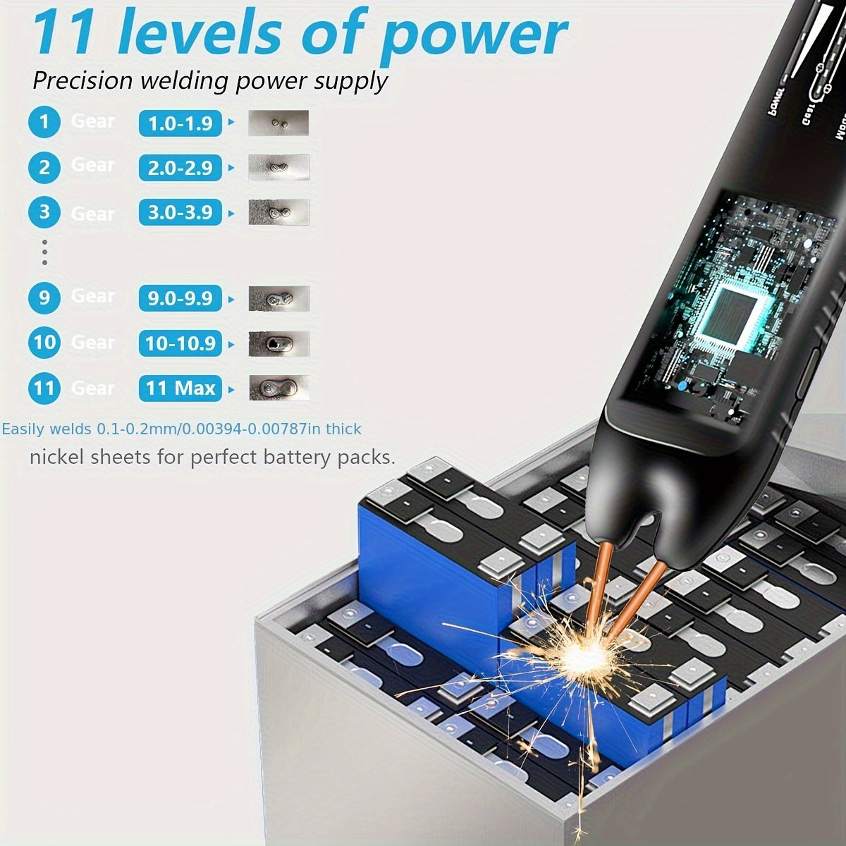 Saldatore a batteria, 11 velocità regolabili manuale/automatico aghetto di saldatura staccabile con sistema di rilevamento della temperatura integrato, adatto per piastre di nichel, ferro e acciaio inossidabile