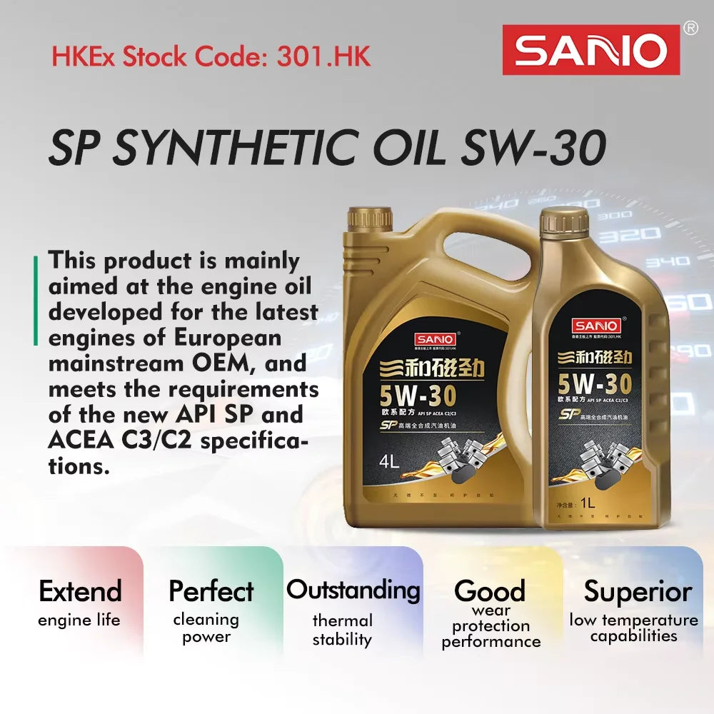 SANVO SP olio motore sintetico 5w30 ad alte prestazioni al 100% modelli europei 4L
