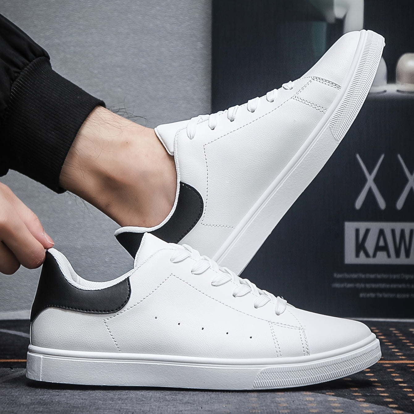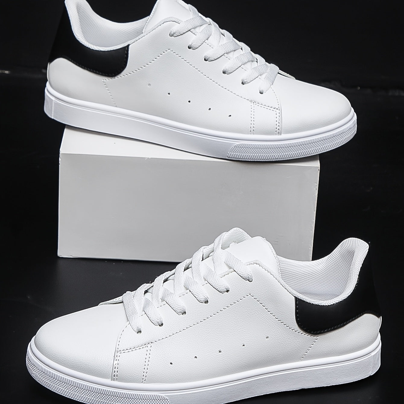 Scarpe da Ginnastica Casual Basse da Uomo - Traspiranti, Leggere e Resistenti in Materiale PU con Accenti Neri, Perfette per Abbigliamento Casual o Attività Sportive
