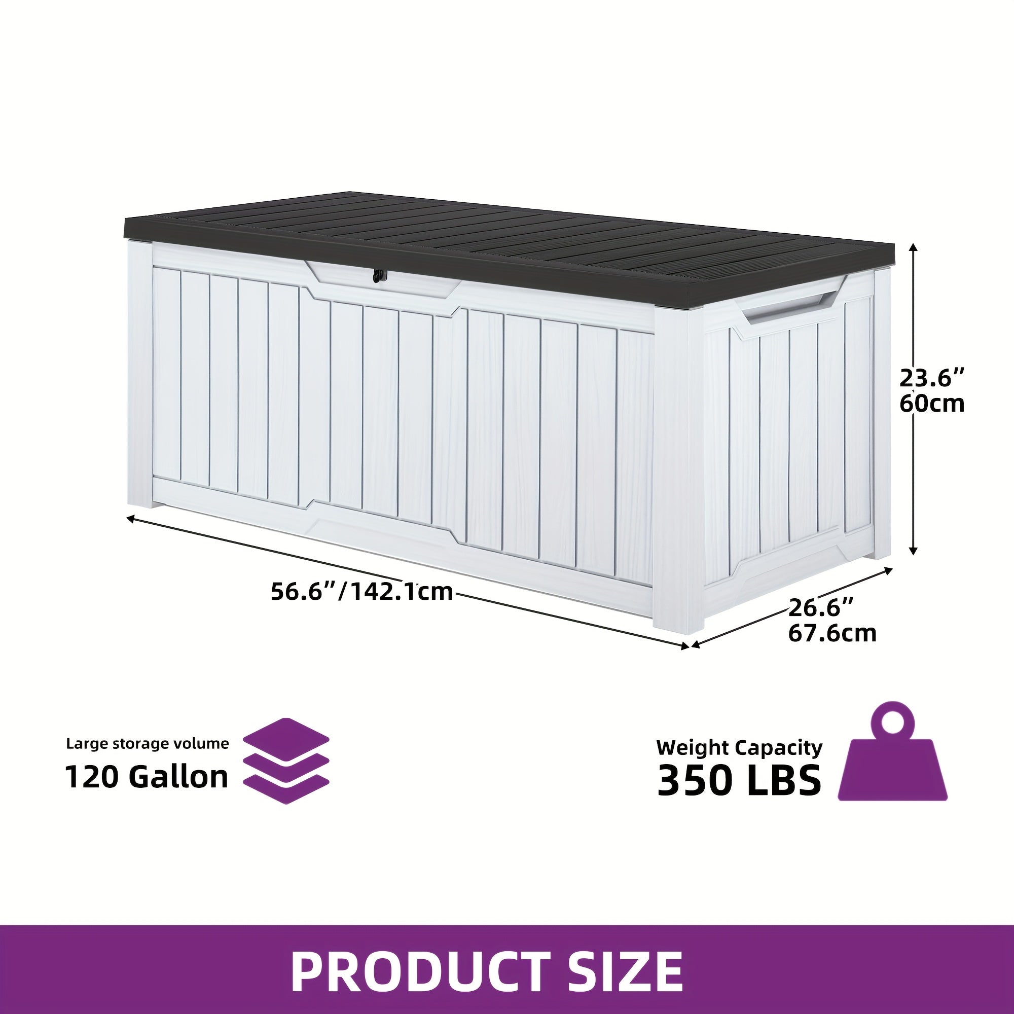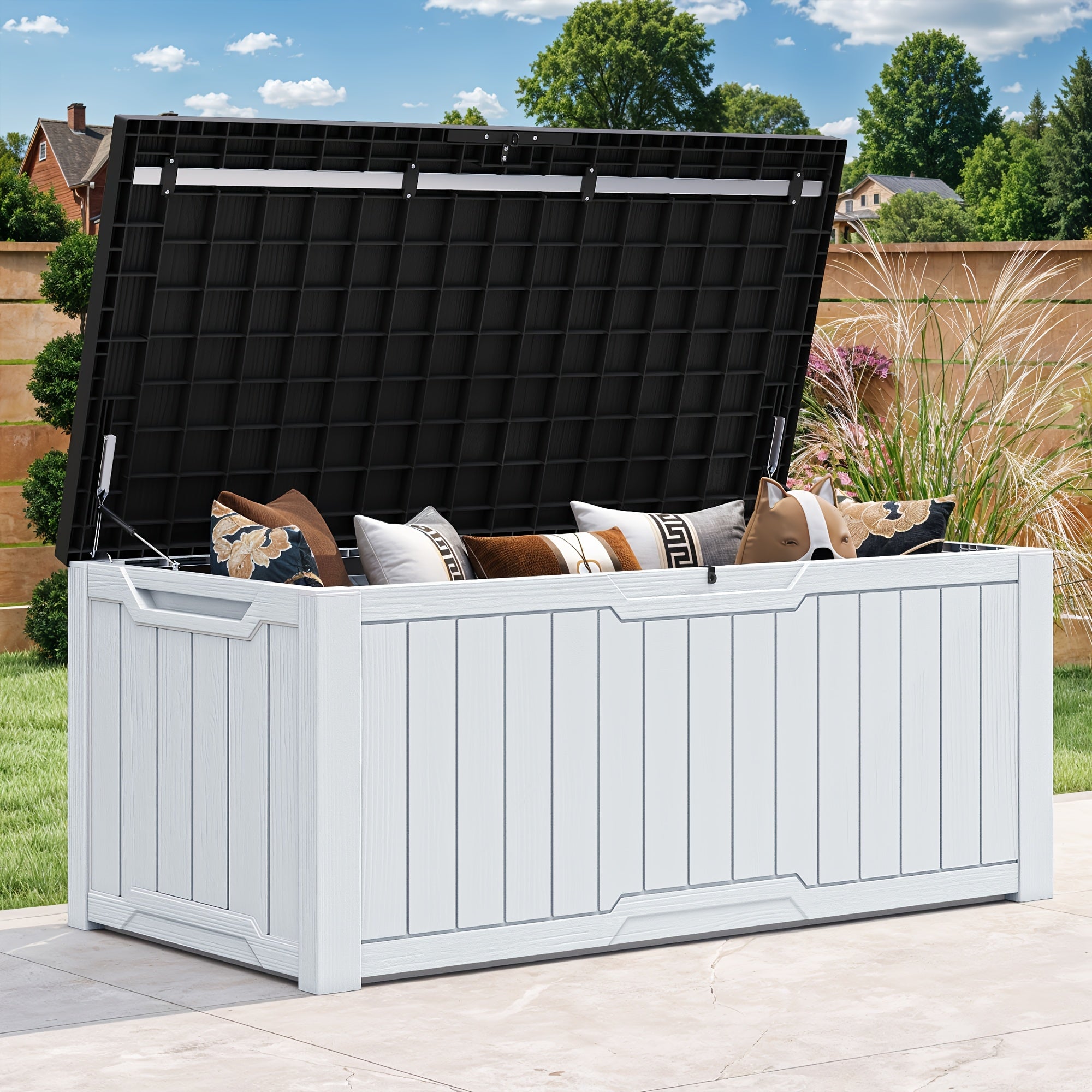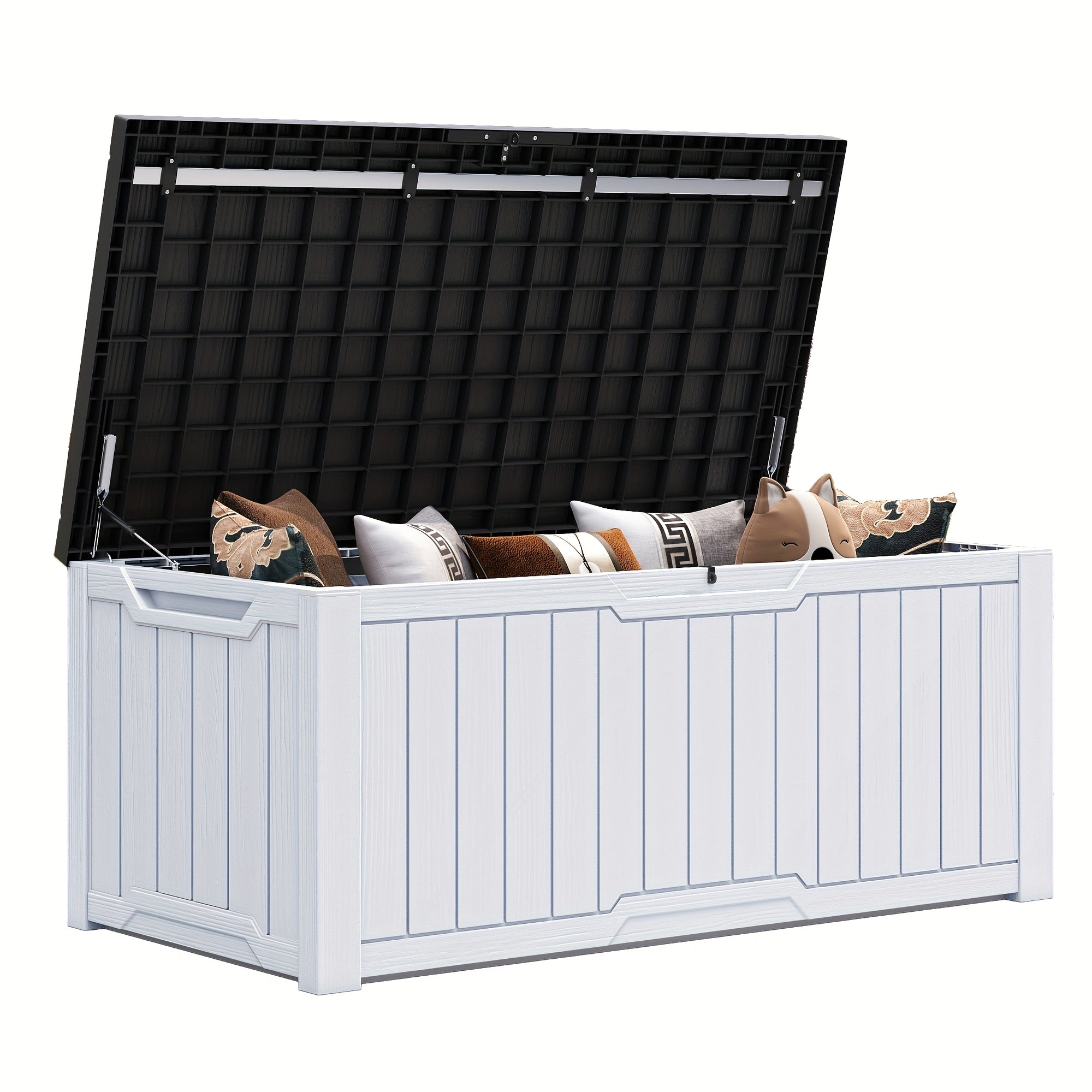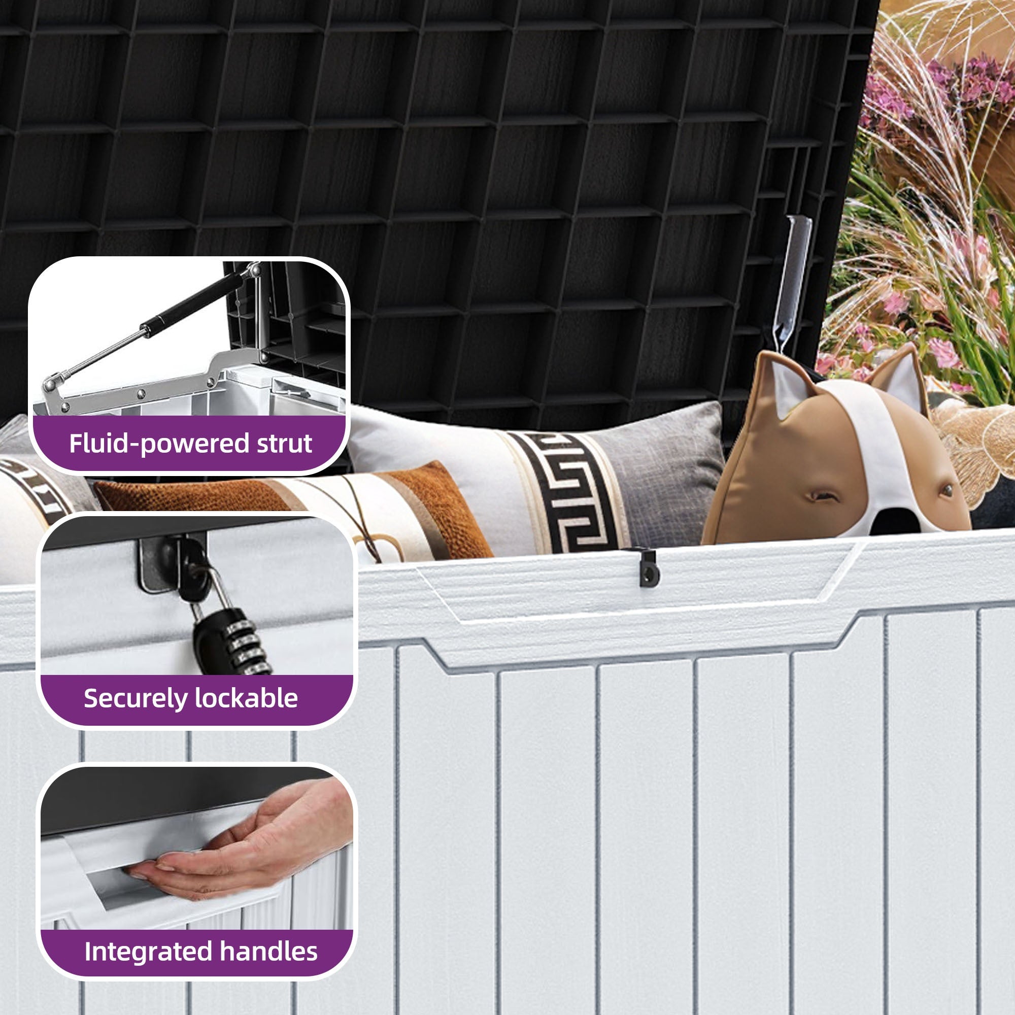 Scatola di Stoccaggio Esterno Impermeabile 450L con Coperchio a Gas Lift - Cassone Resistente per Giardino, Organizzatore da Patio per Cuscini e Attrezzi, Nero & Bianco, 142x68x60cm, Scatola Portaoggetti, Armadio o Rack per Esterni