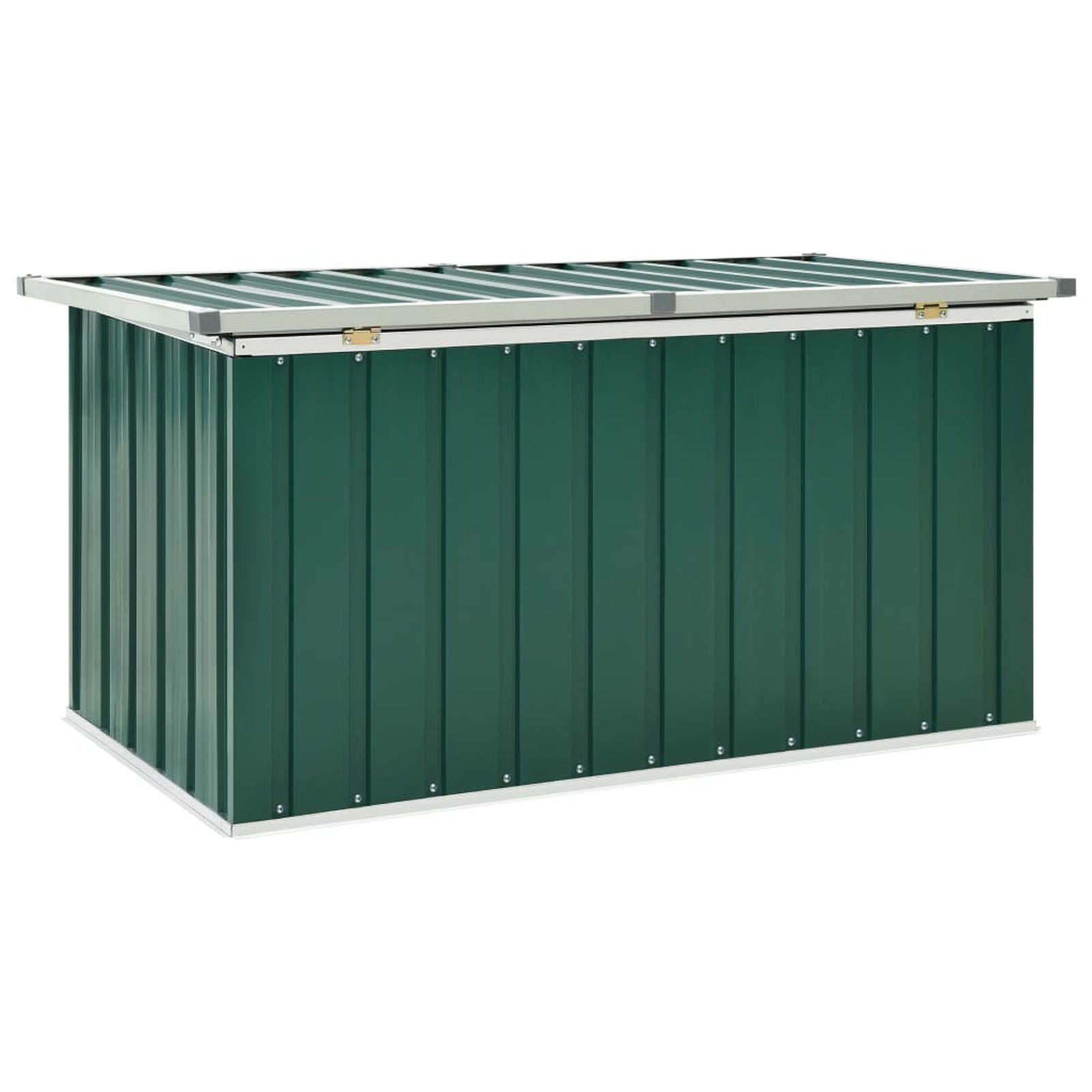 Scatola di stoccaggio per giardino Scatola da ponte con coperchio Contenitore da esterno Scatola per strumenti da giardino Organizzatore per capanno Organizzatore per patio da giardino Verde 129x67x65 cm, Scatola, Armadio, Scaffale per stoccaggio all'aper
