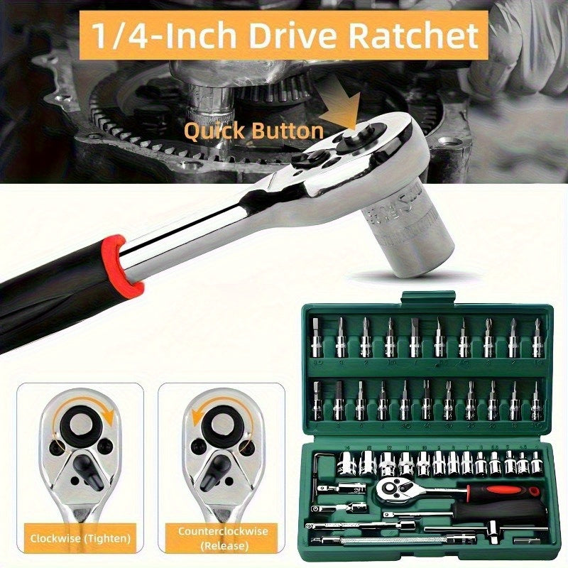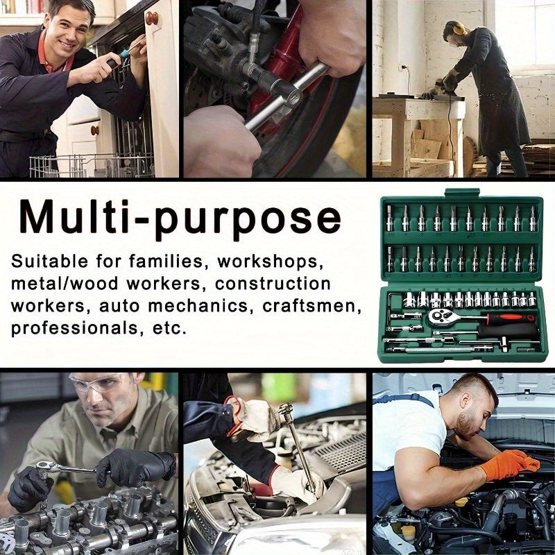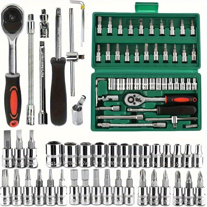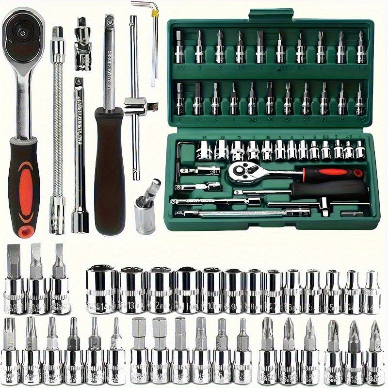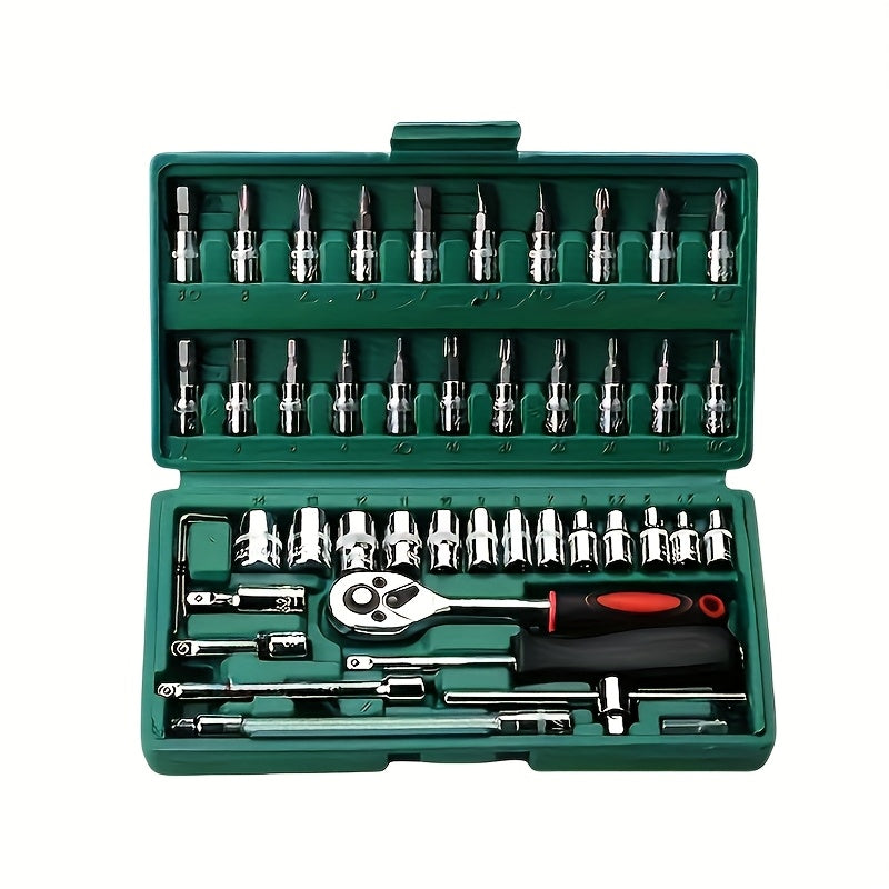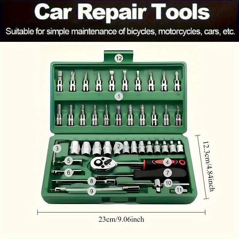 Scatola professionale per riparazioni auto, una soluzione completa e integrata adatta per auto, biciclette e motociclette, nonché un set di strumenti manuali multi-funzione combinato WY46&216-0505-17, senza batteria