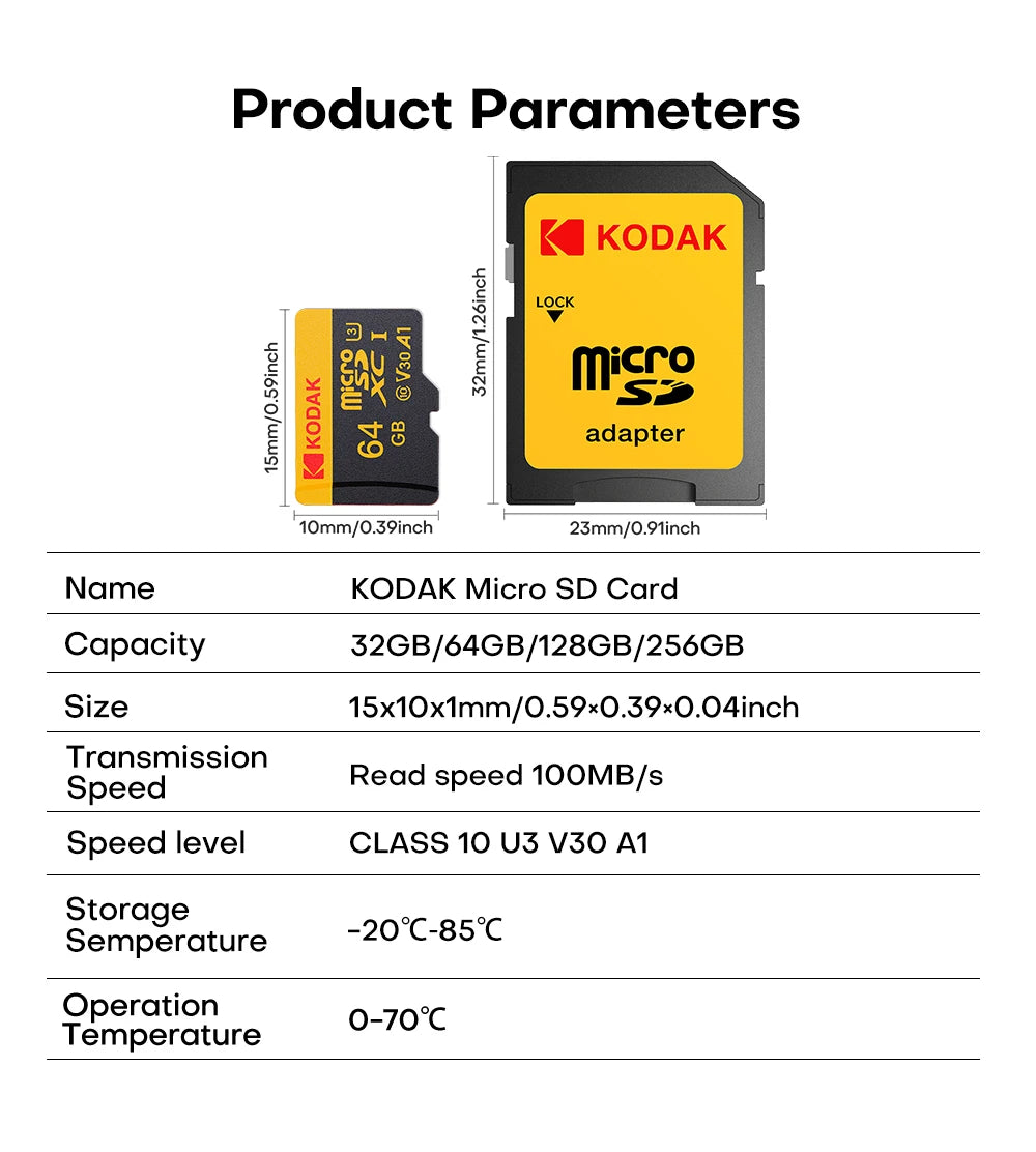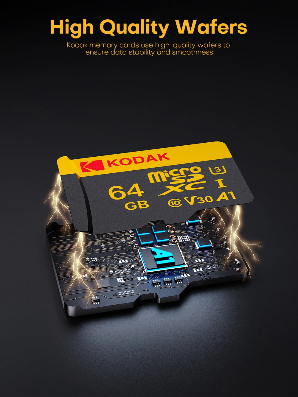 Scheda di memoria KODAK Micro SD 256G FINO a 100 MB/s C10 U3 32G 64G 128G Scheda TF 4K HD per adattatore lettore di schede USB Microsd per fotocamera