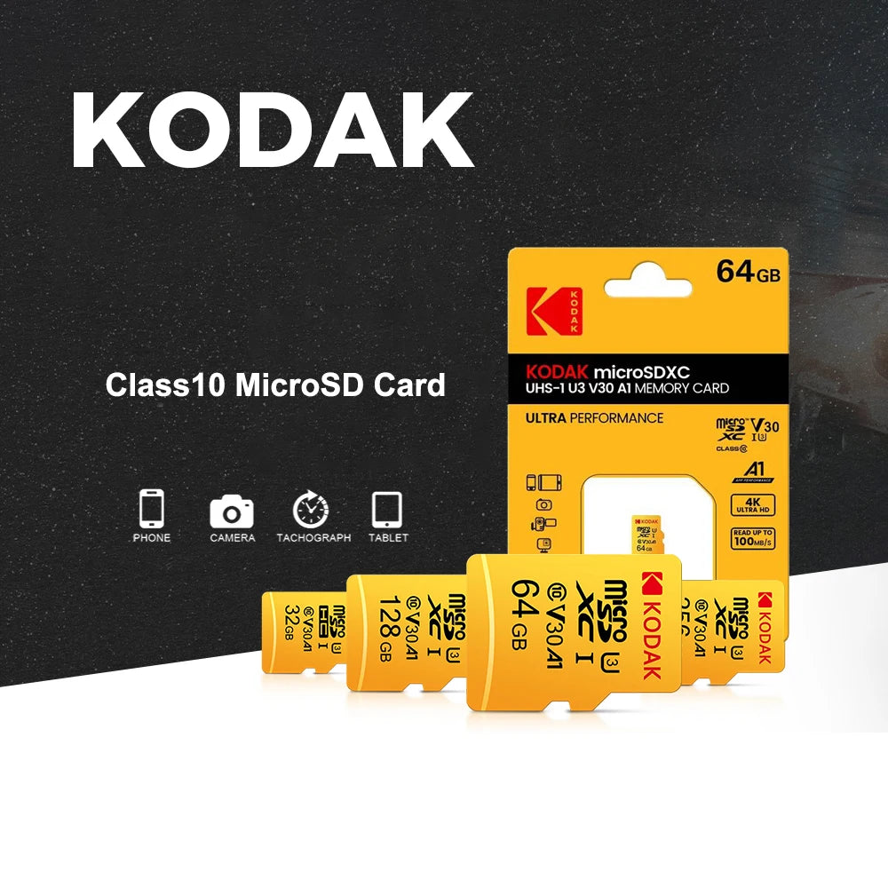 Scheda di memoria MicroSD originale KODAK C10 32GB 64GB Memori Class10 TF Micro SD SDXC 128GB 256GB 512GB A1 U3 V30 4K per fotocamera