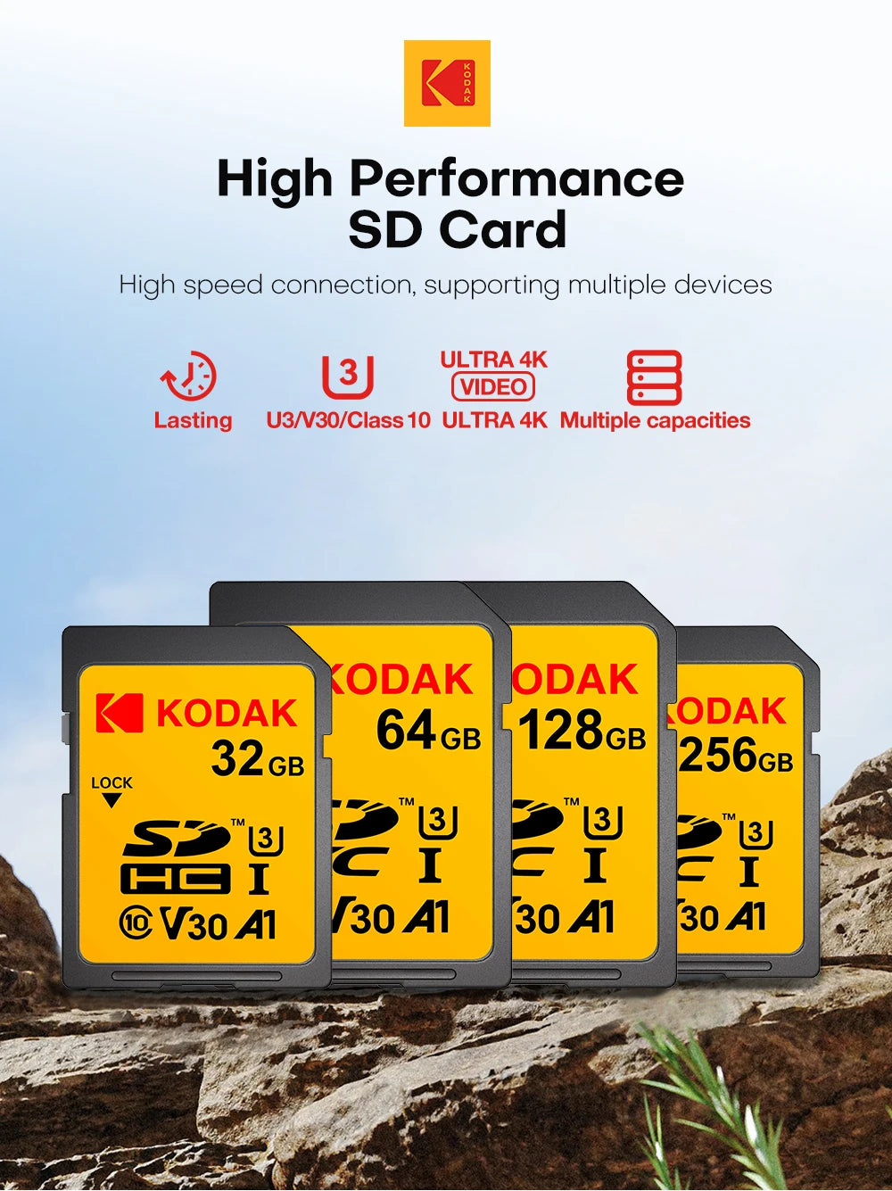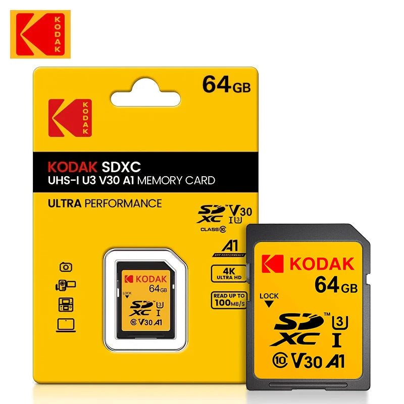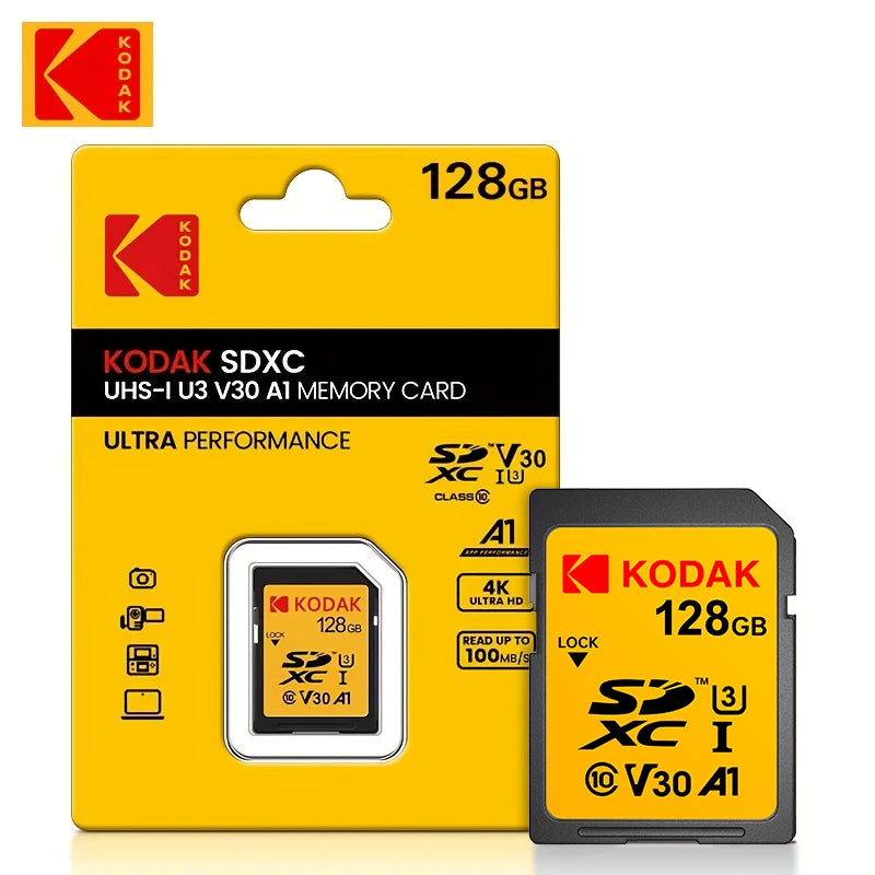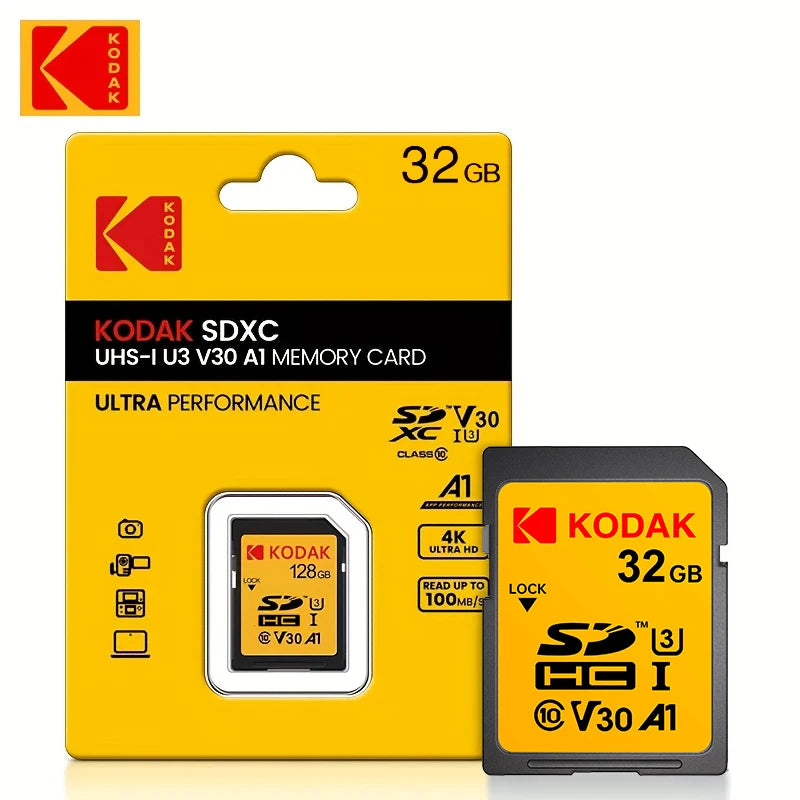 Scheda di memoria SD professionale Kodak Scheda SDHC da 32 GB 128 GB 64 GB SDXC Scheda SD Fotocamera Class10 UHS-I 100 MB/S Capacità effettiva