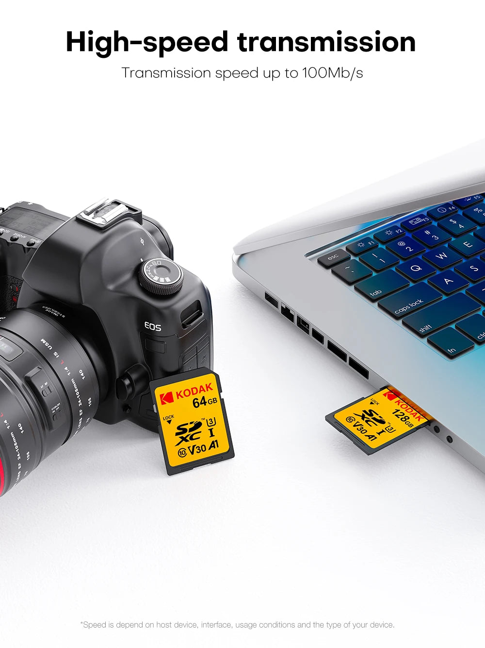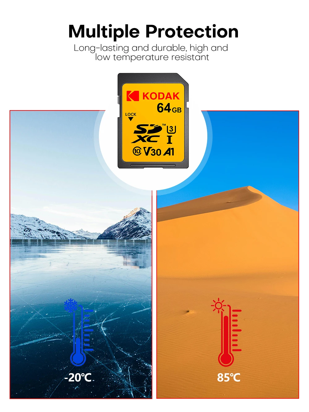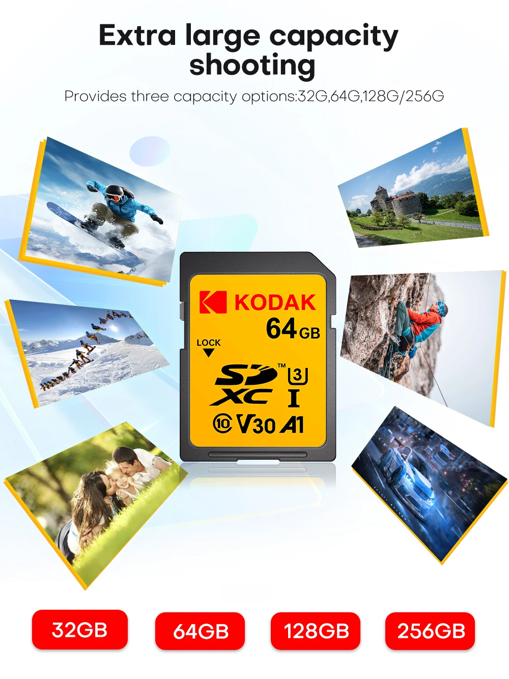 Scheda di memoria SD professionale Kodak Scheda SDHC da 32 GB 128 GB 64 GB SDXC Scheda SD Fotocamera Class10 UHS-I 100 MB/S Capacità effettiva