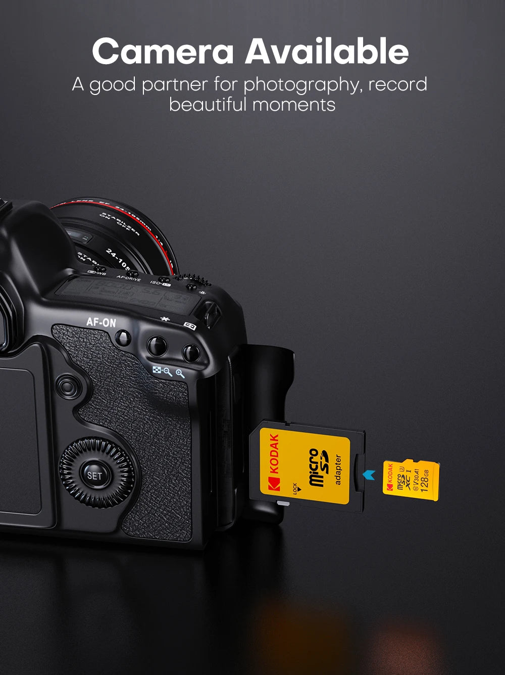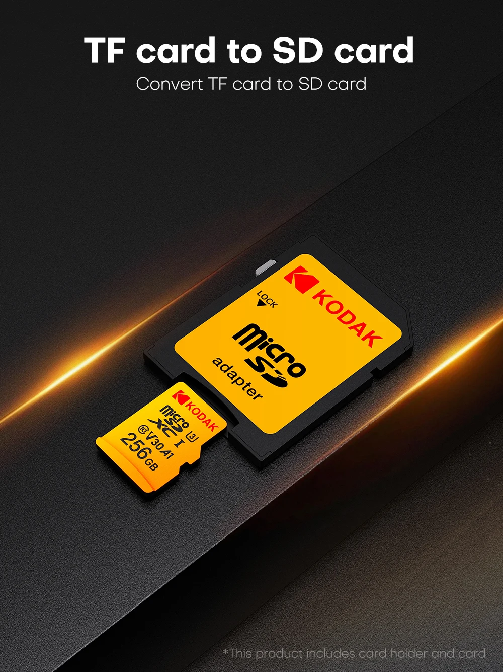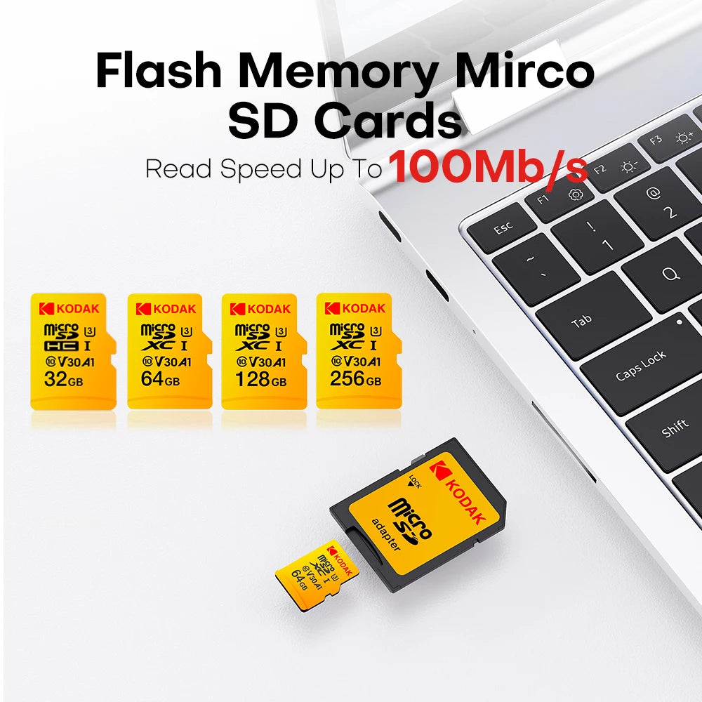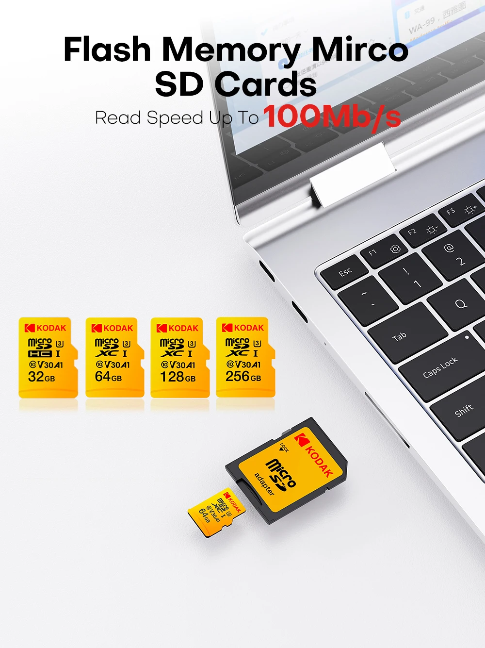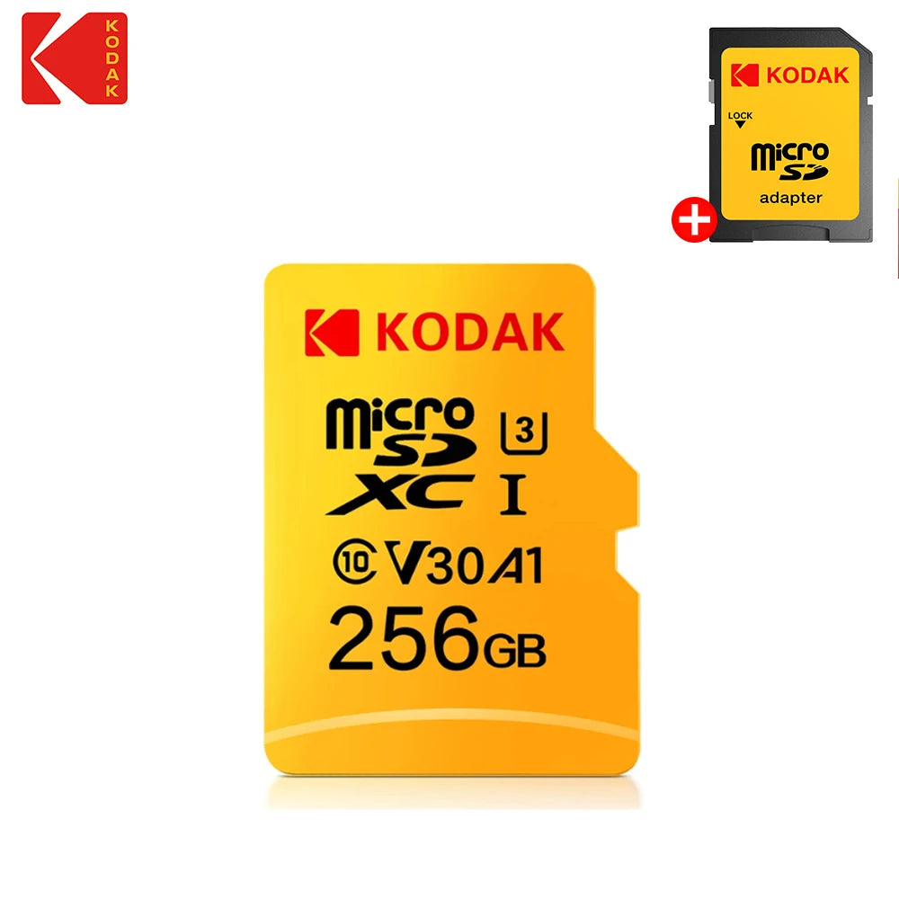 Scheda Micro SD KODAK Scheda di memoria da 256 GB FINO a 100 MB/s C10 U3 32 GB 64 GB 128 GB Scheda TF 4K HD per adattatore lettore di schede USB Microsd