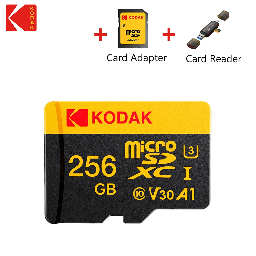 Scheda Micro SD Kodak Ultra oro nero 128 GB 32 GB 64 GB 256G Scheda di memoria TF Schede di memoria Flash Card per fotocamera del telefono + lettore di schede