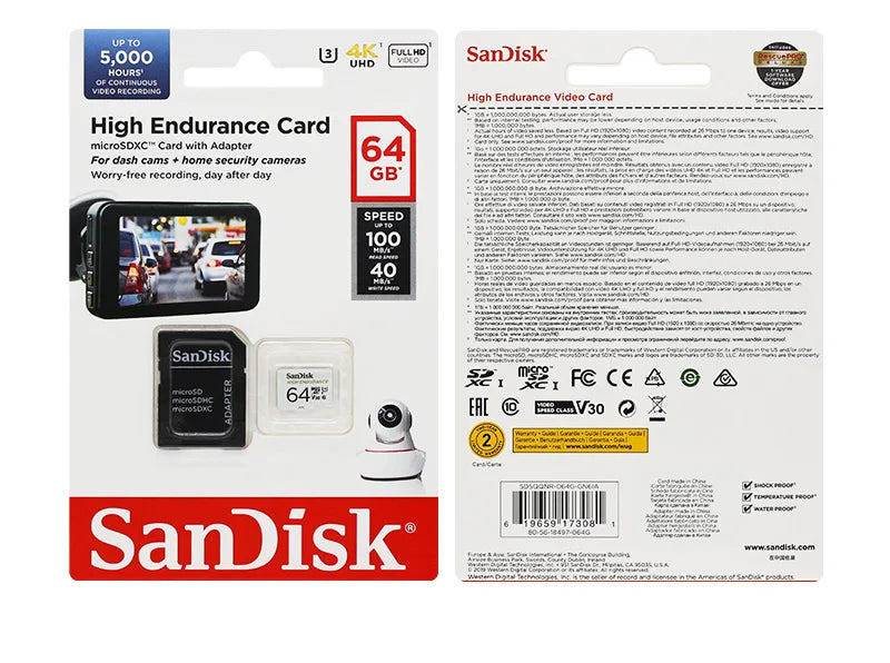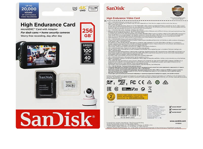 Scheda Micro SD originale SanDisk ad alta resistenza MicroSDHC 32GB V30 C10 MicroSDXC 64GB 128GB 256GB Scheda di memoria per Dash Camera