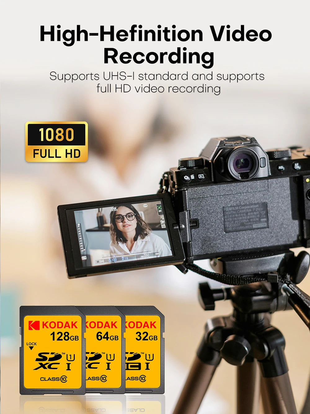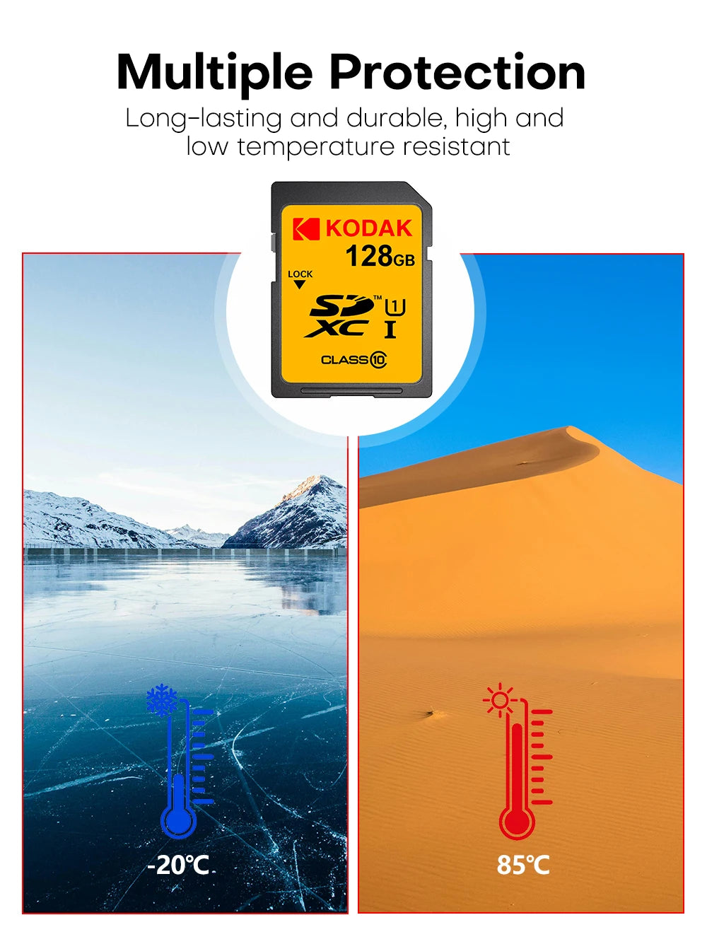 Con capacità fino a 128 GB, la scheda SD KODAK Ultra offre ampio spazio di archiviazione per foto, video e altri file.