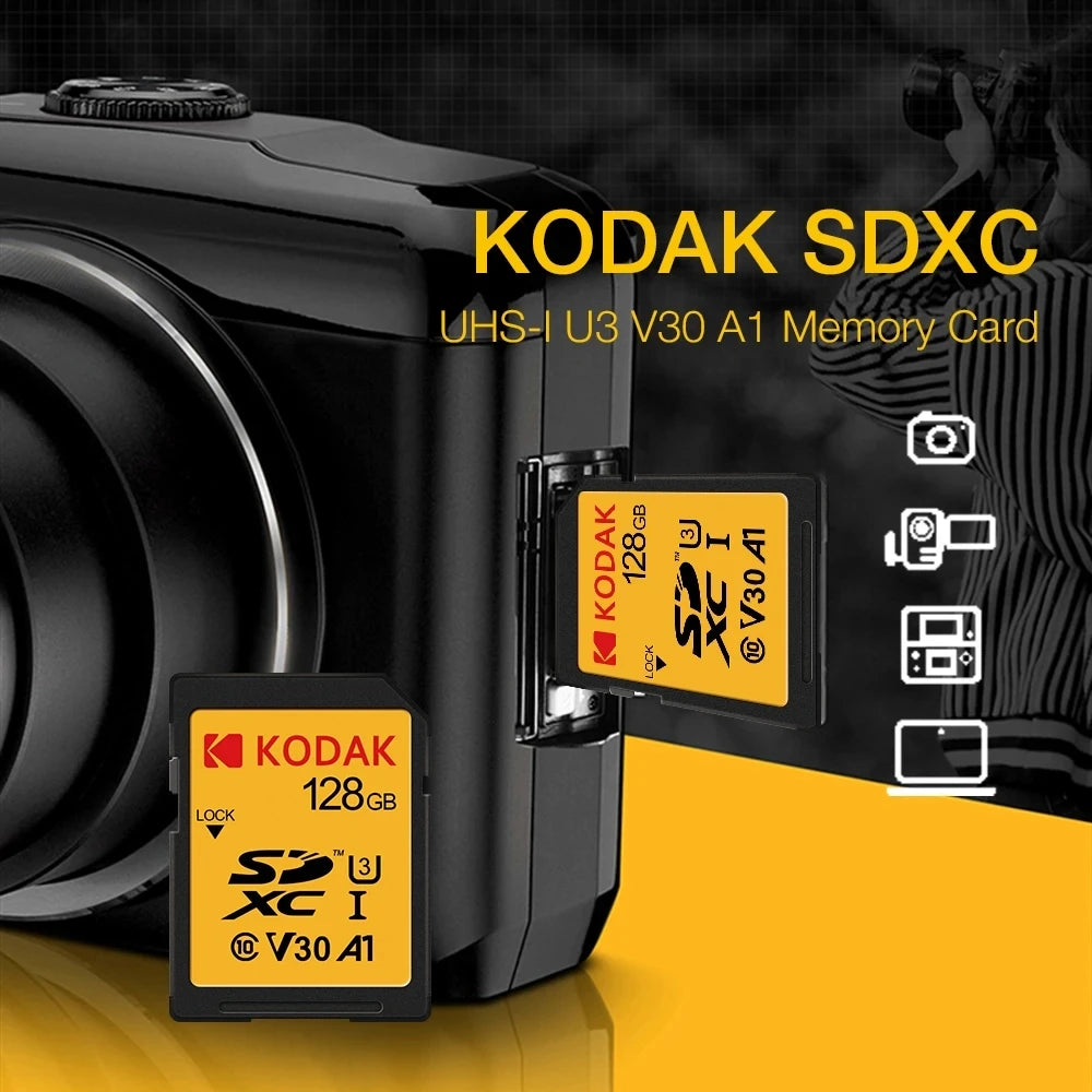 Schede SD KODAK per fotocamera 100 MB/s scheda di memoria ad alta velocità 256GB 128GB 64GB SDXC C10 A1 U3 V30 UHS-I sdcard per 4K HD SLR DV