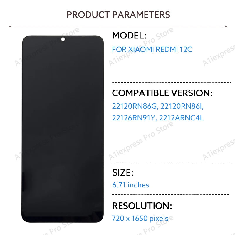 Schermo LCD per Xiaomi Redmi 12C Display LCD Touch Screen Digitizer Assembly 22120RN86G 22120RN86I 22126RN91Y 2212ARNC4L Parti
