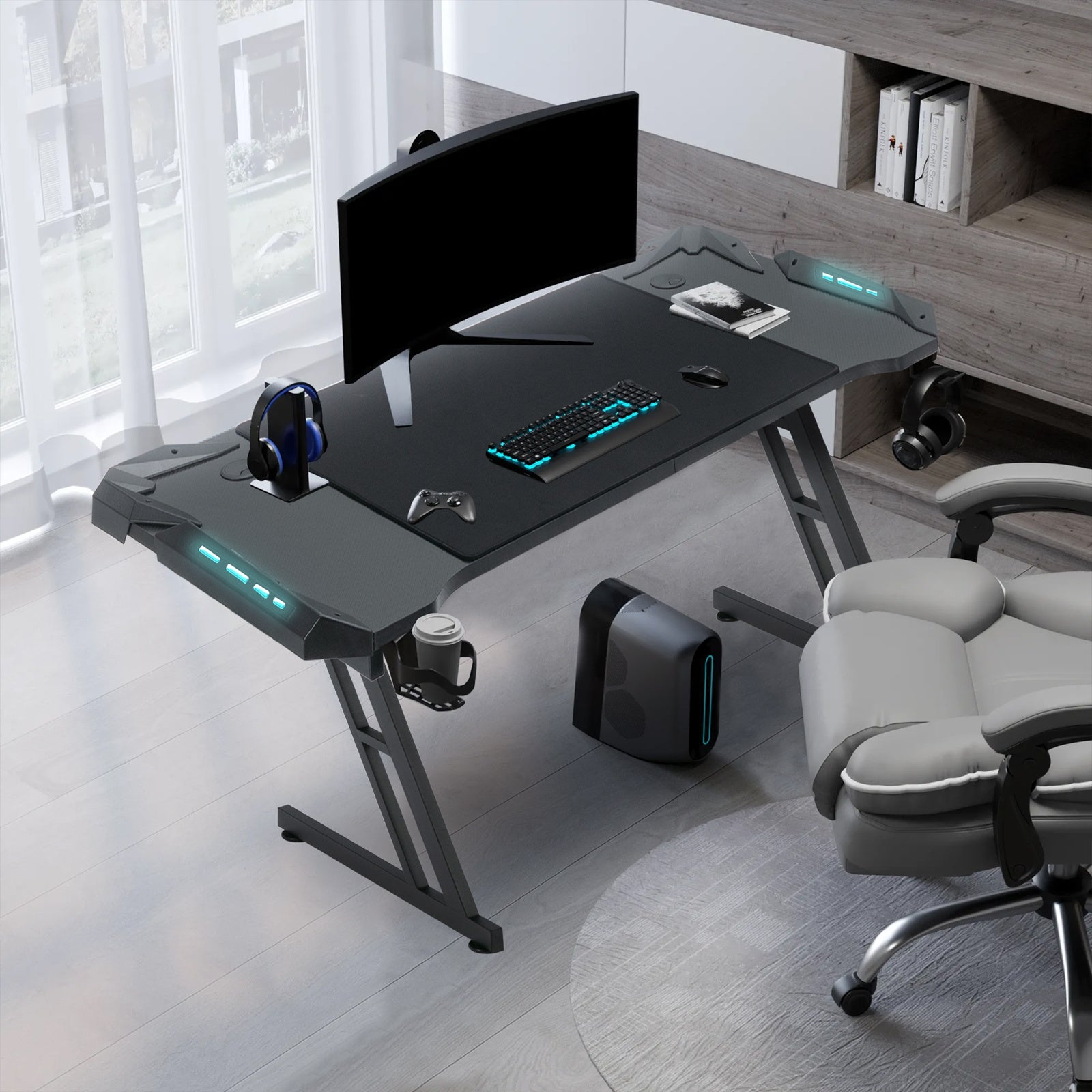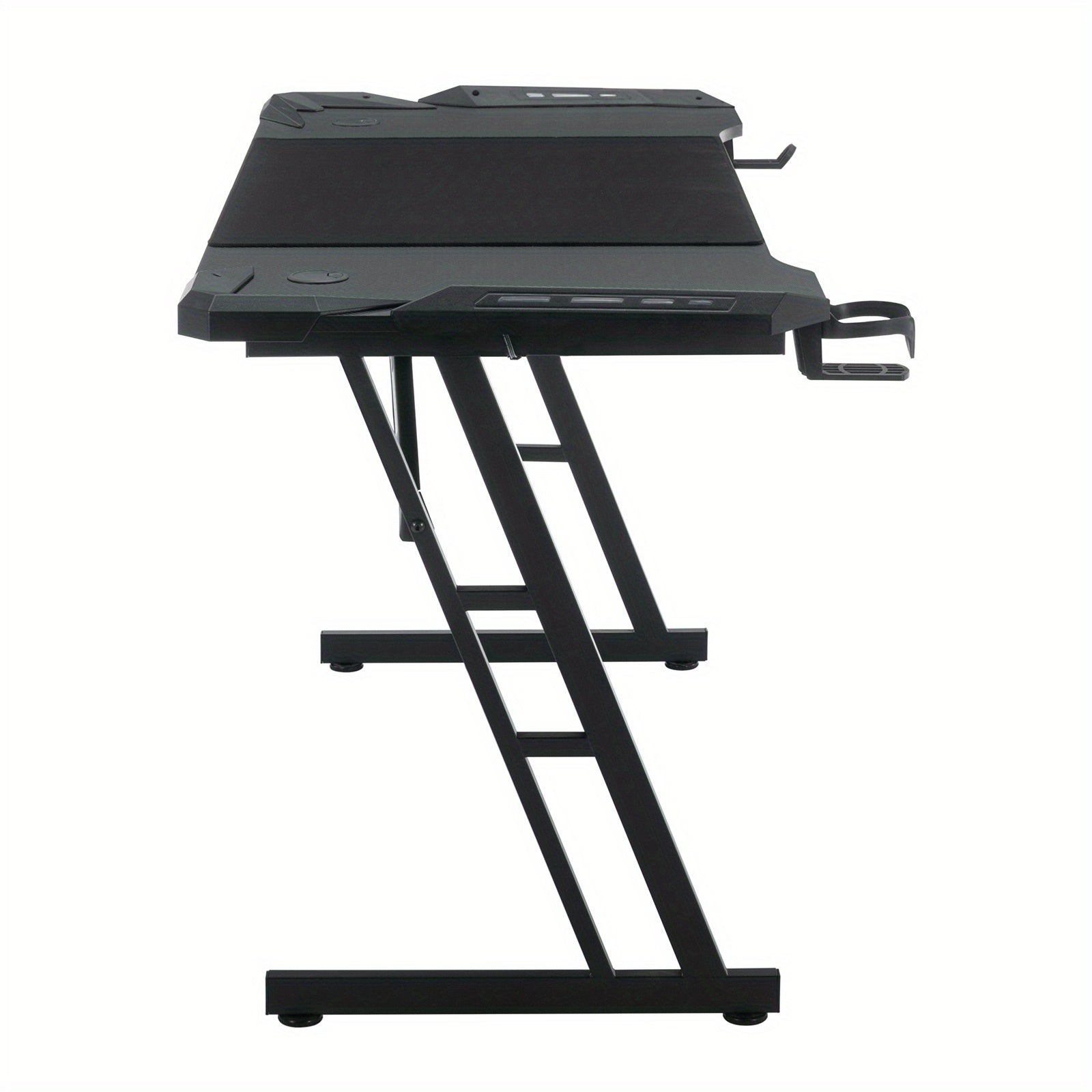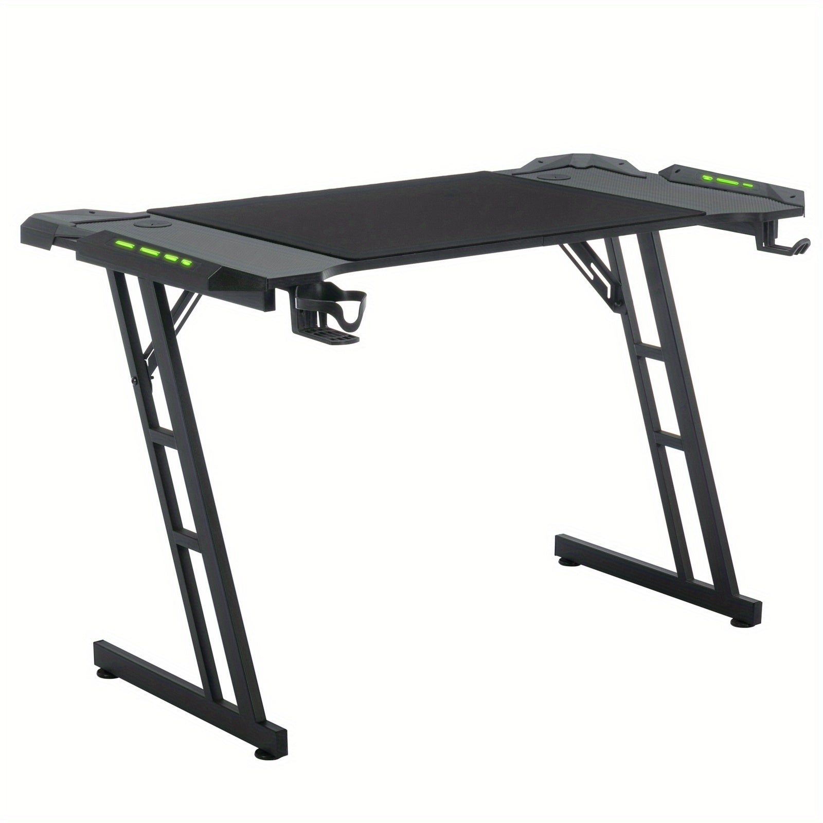 Scrivania LED per computer, tavolo da gaming nero con porta cuffie e portabicchieri, luce RGB ambientale, adatta per ufficio e studio, 120/140/160 cm