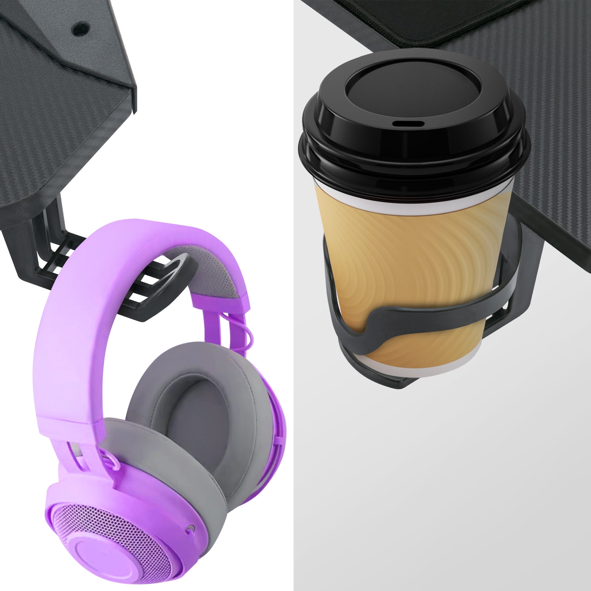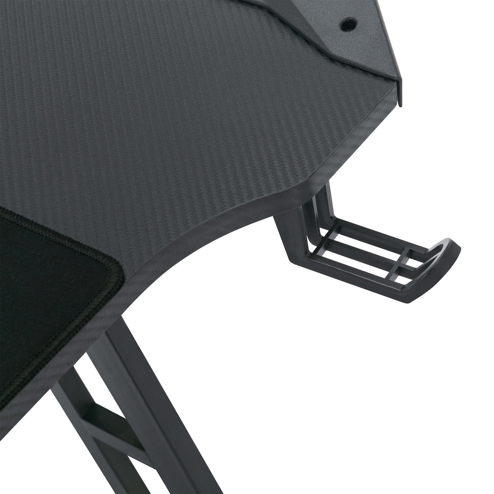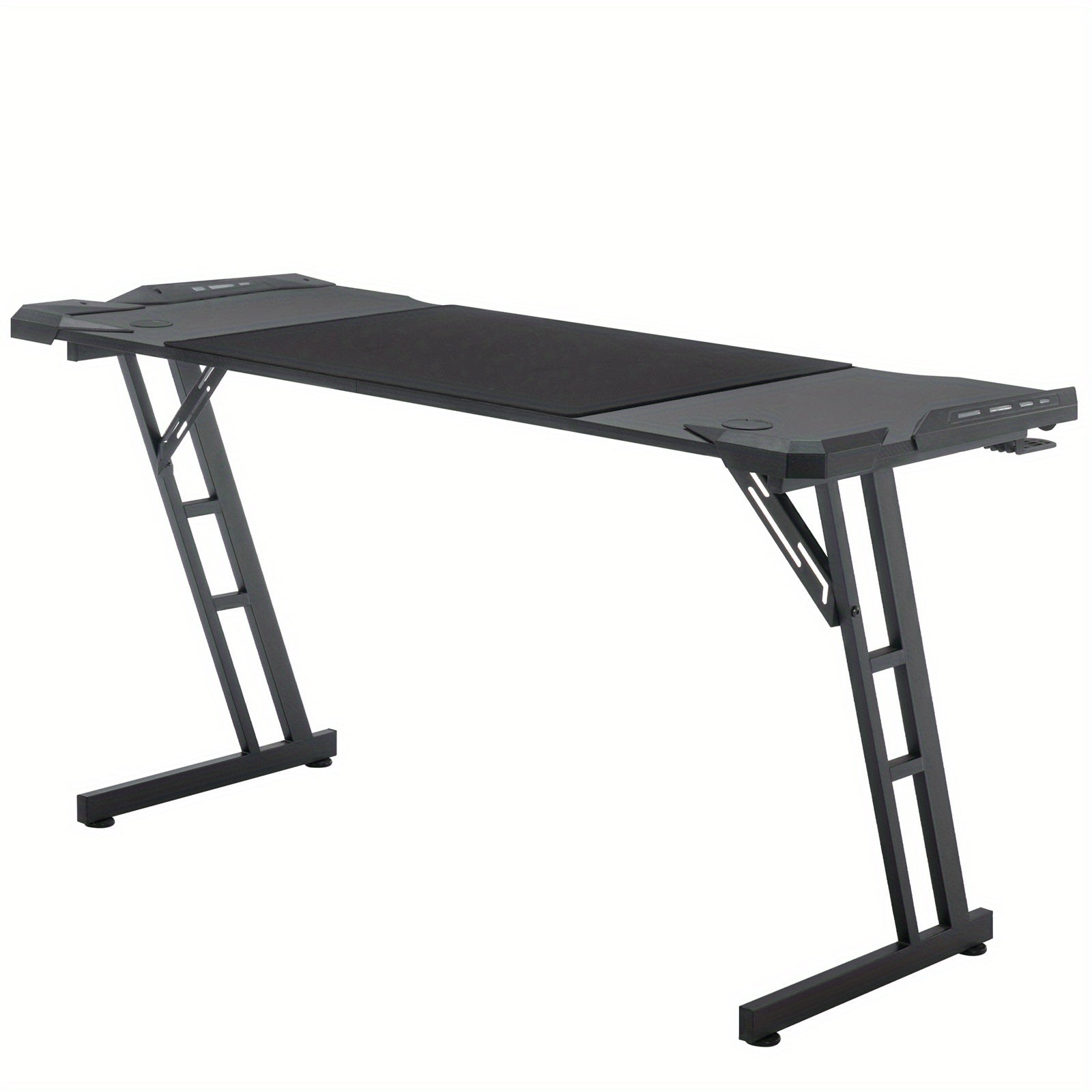 Scrivania LED per computer, tavolo da gaming nero con porta cuffie e portabicchieri, luce RGB ambientale, adatta per ufficio e studio, 120/140/160 cm
