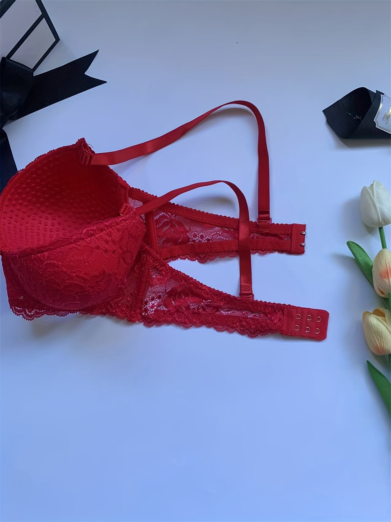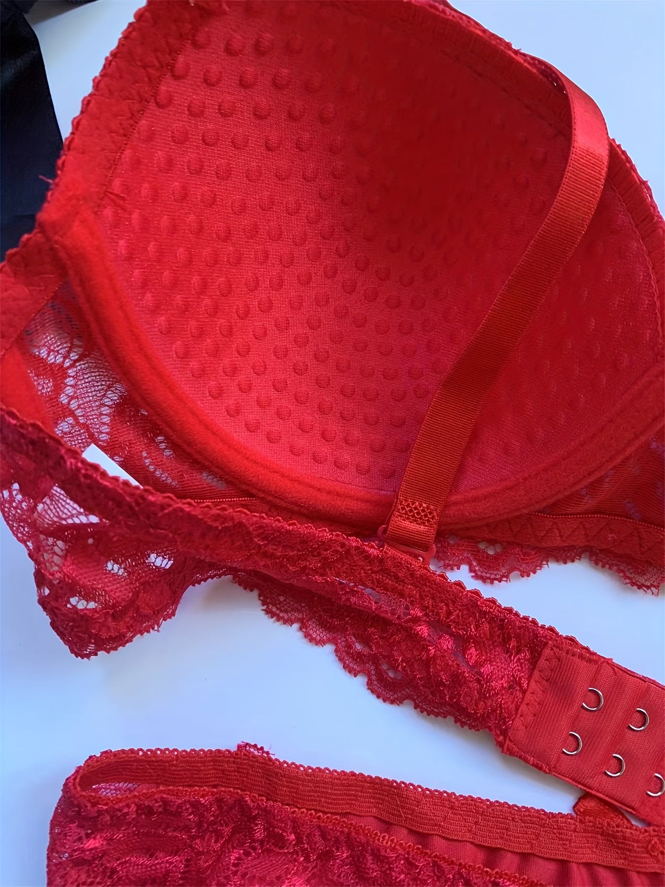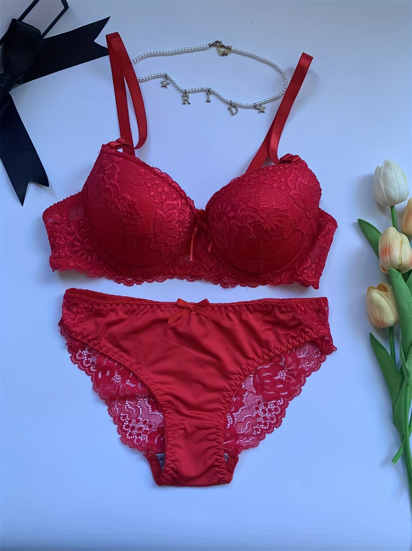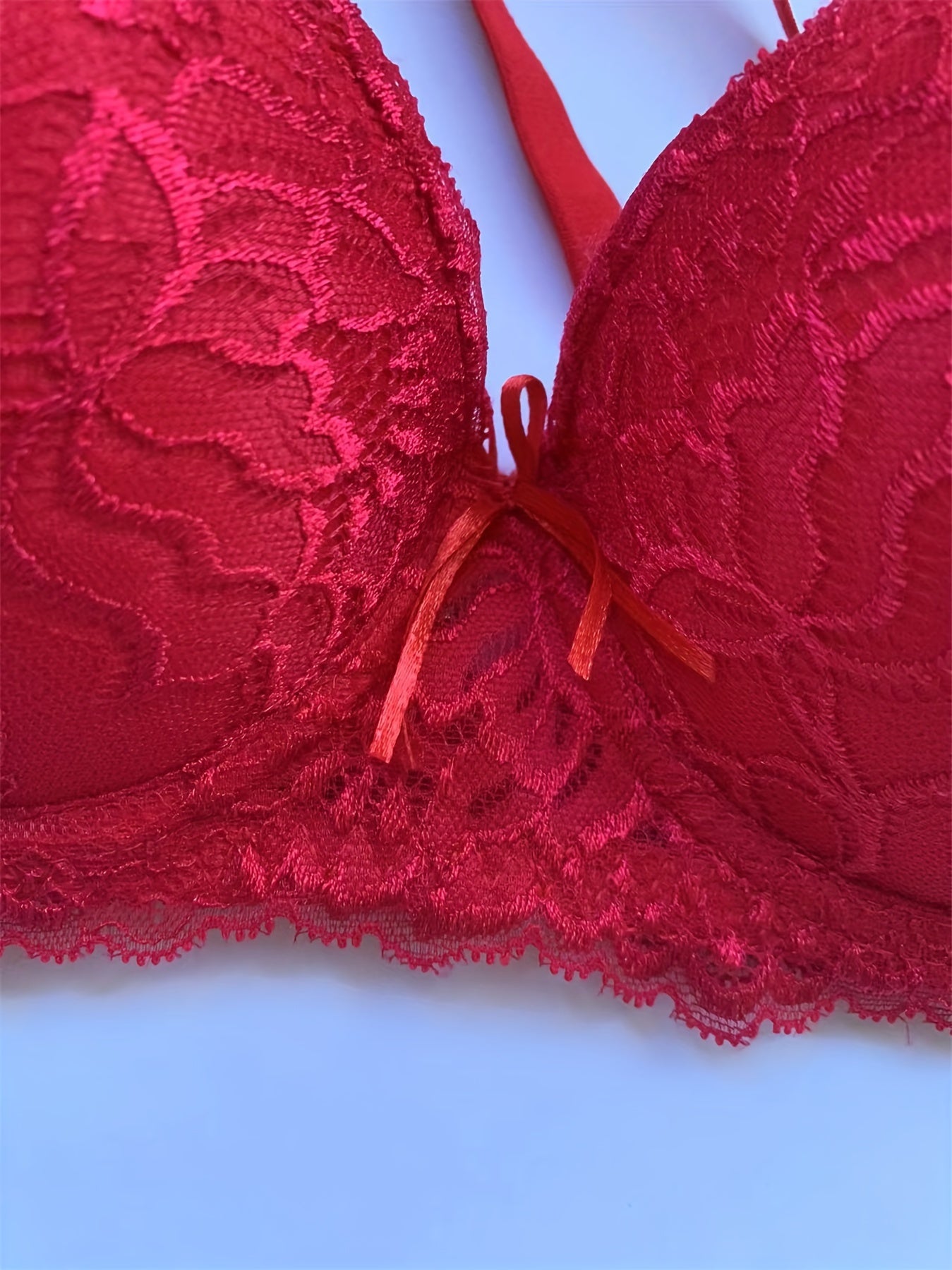 Serie Speciale Elegante Completo Reggiseno Bralette e Perizoma Triangolo per Donna - Stile Maturo, Supporto Medio, Coppe Non Rimovibili, Misto Poliammide ed Elastan, Tessuto, Slip a Vita Bassa, Adulto - Rosso