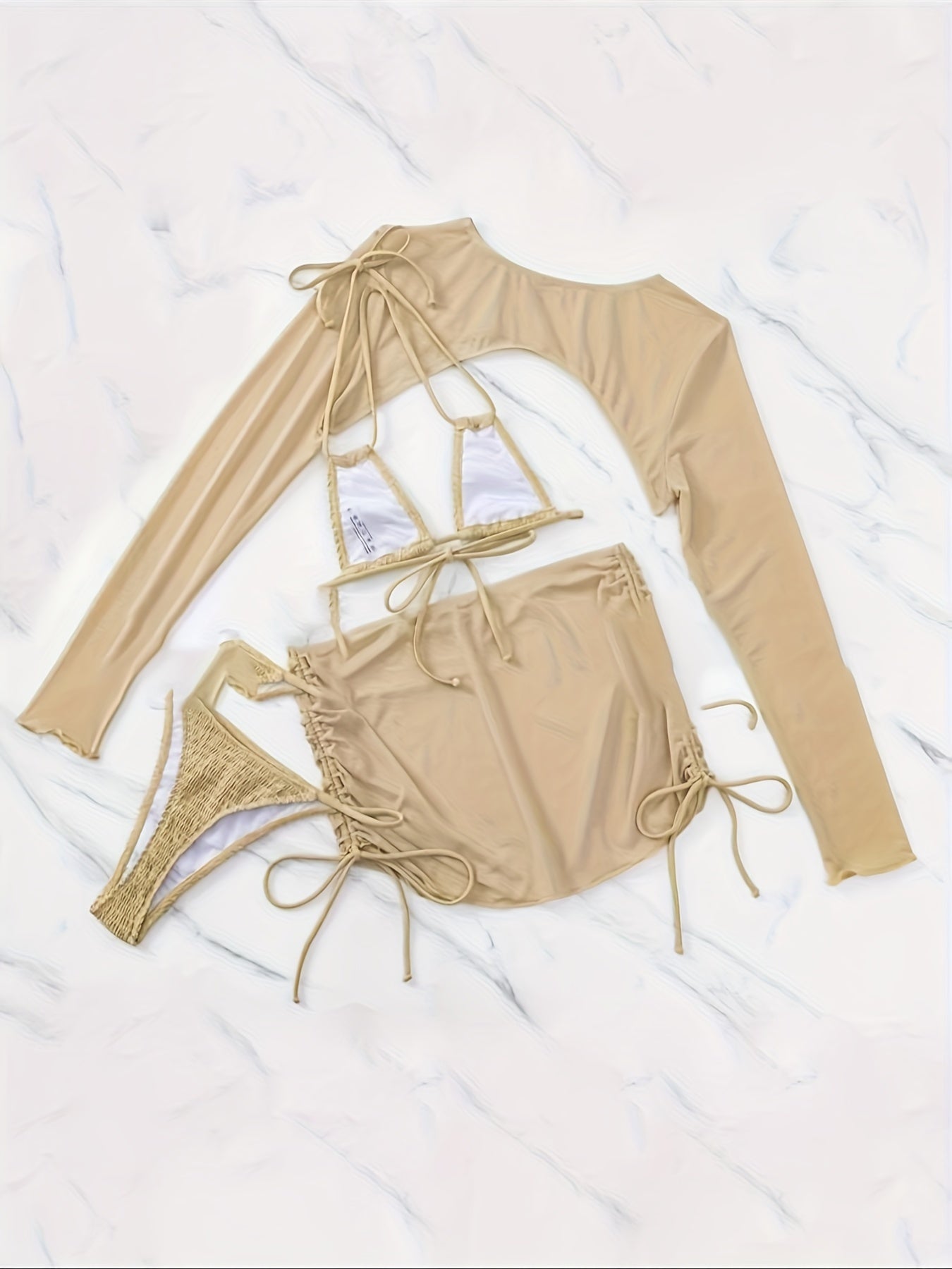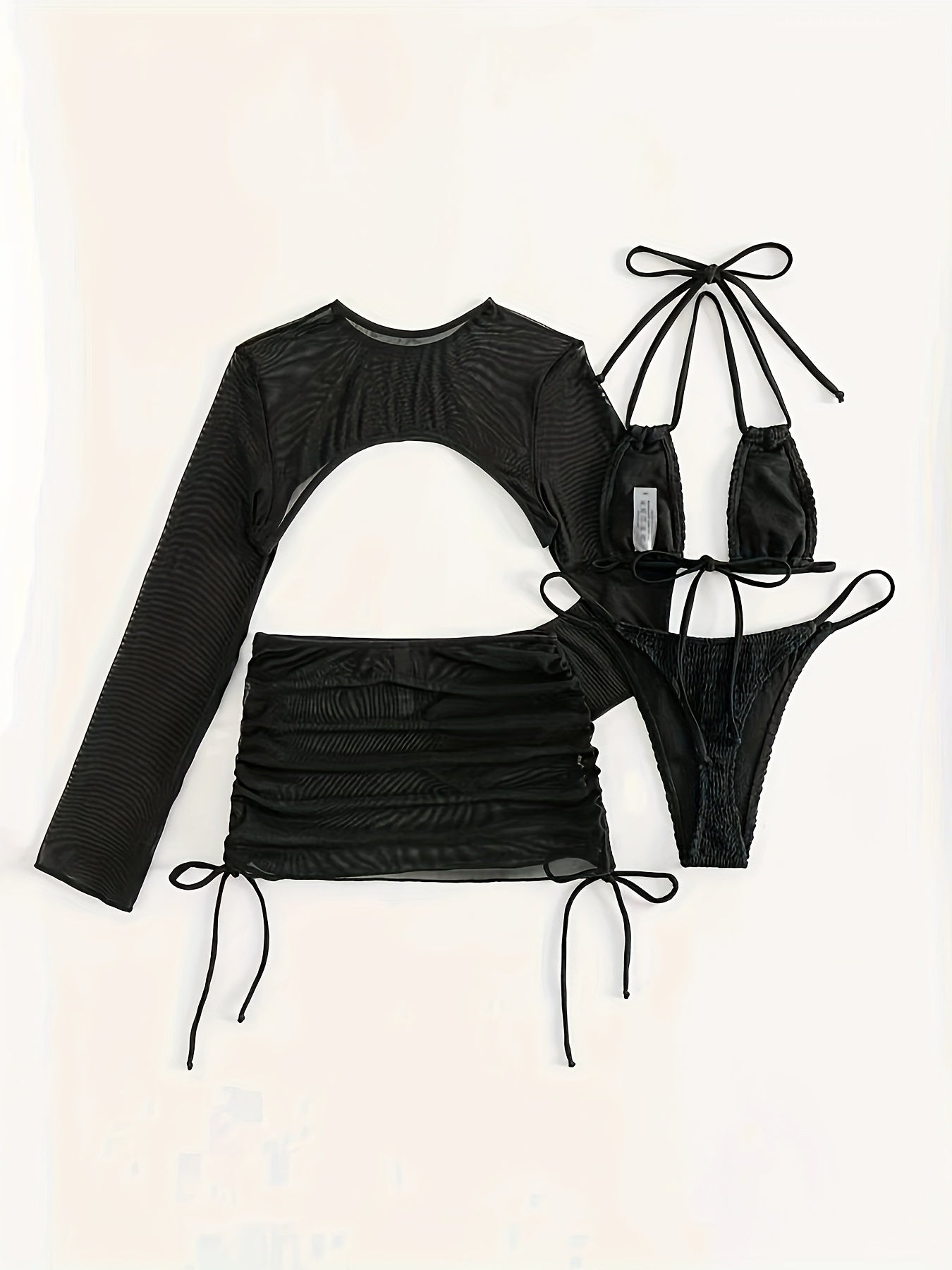Set Bikini Sexy Quattro Pezzi con Copricostume in Rete