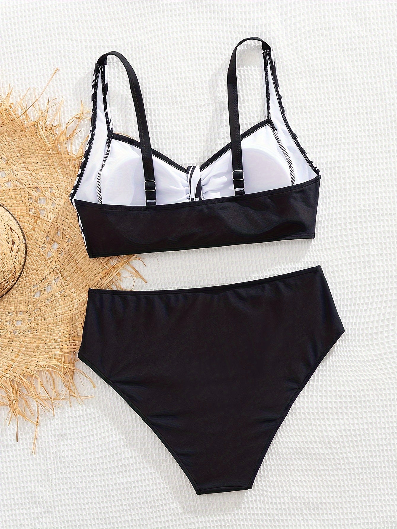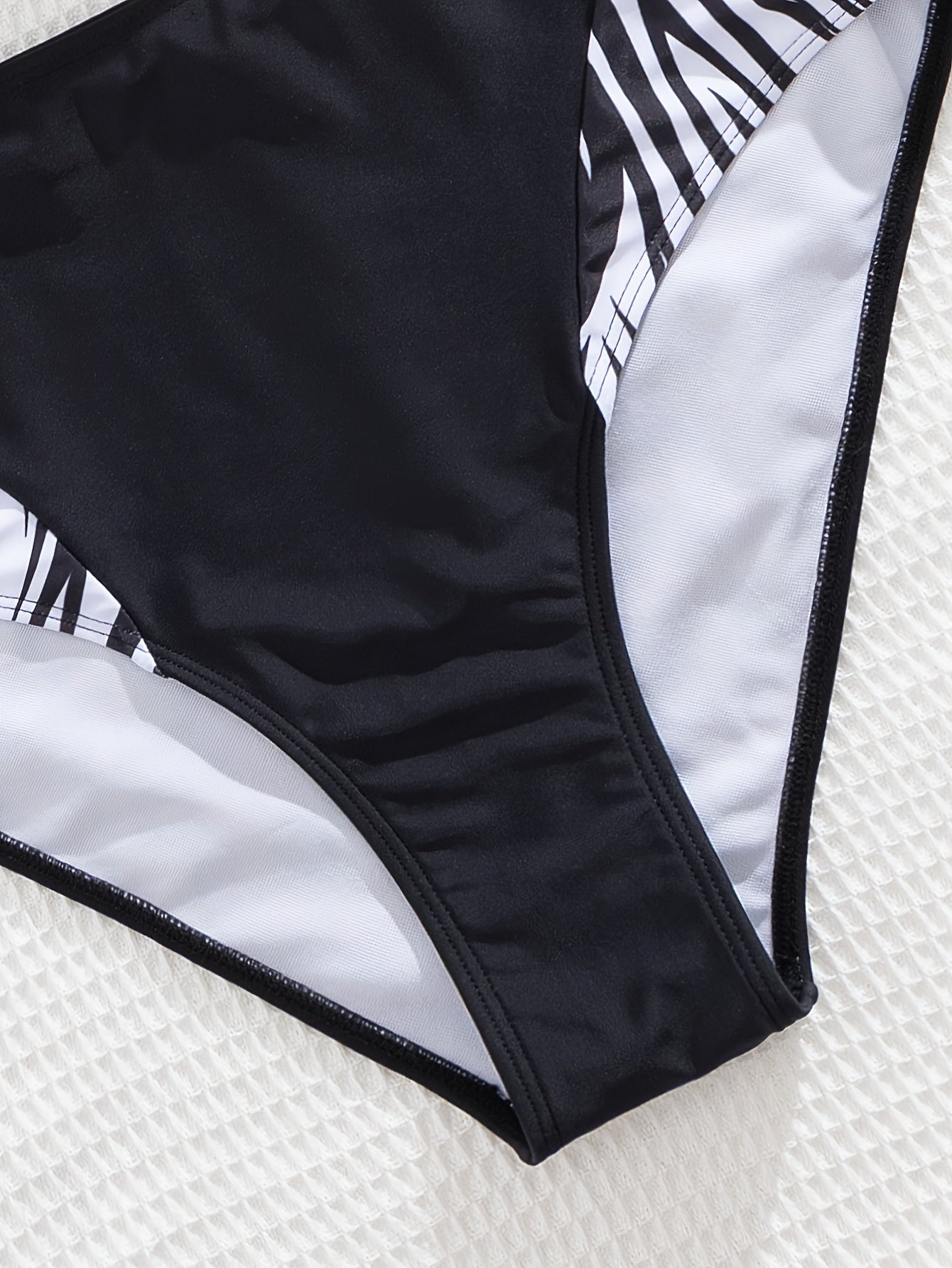 Set Bikini Stampa Zebra Taglie Forti Chic - Costume da Bagno Due Pezzi a Vita Alta Snellente per Donne, Elasticizzato & Lavabile in Lavatrice