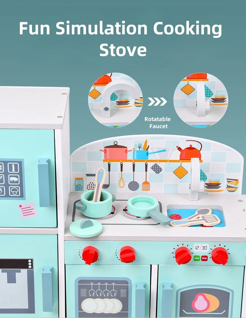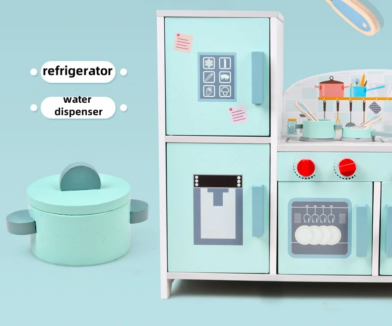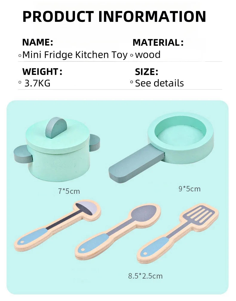 Set da gioco per mini frigorifero da cucina per bambini in legno - Pentole realistiche per giochi di finzione Regali di compleanno unisex per ragazzi e ragazze
