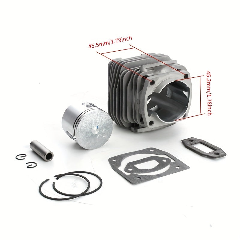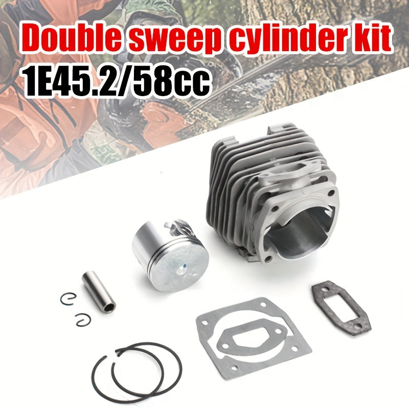 Set di 10 kit cilindro cromato a doppia spazzola per motosega a benzina, adatto per 1E45.2, 58Cc, parti per motosega a benzina 5800, include 1 cilindro, 1 pistone, 2 fasce elastiche, 1 spinotto pistone, 2 seeger spinotto pistone e 3 guarnizioni in carta.
