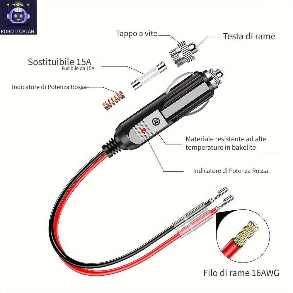 Set di 2 accendisigari universali da 12V/24V con fusibile, per auto, camion e camper - Nessuna batteria, compatibile con il cablaggio fisso.