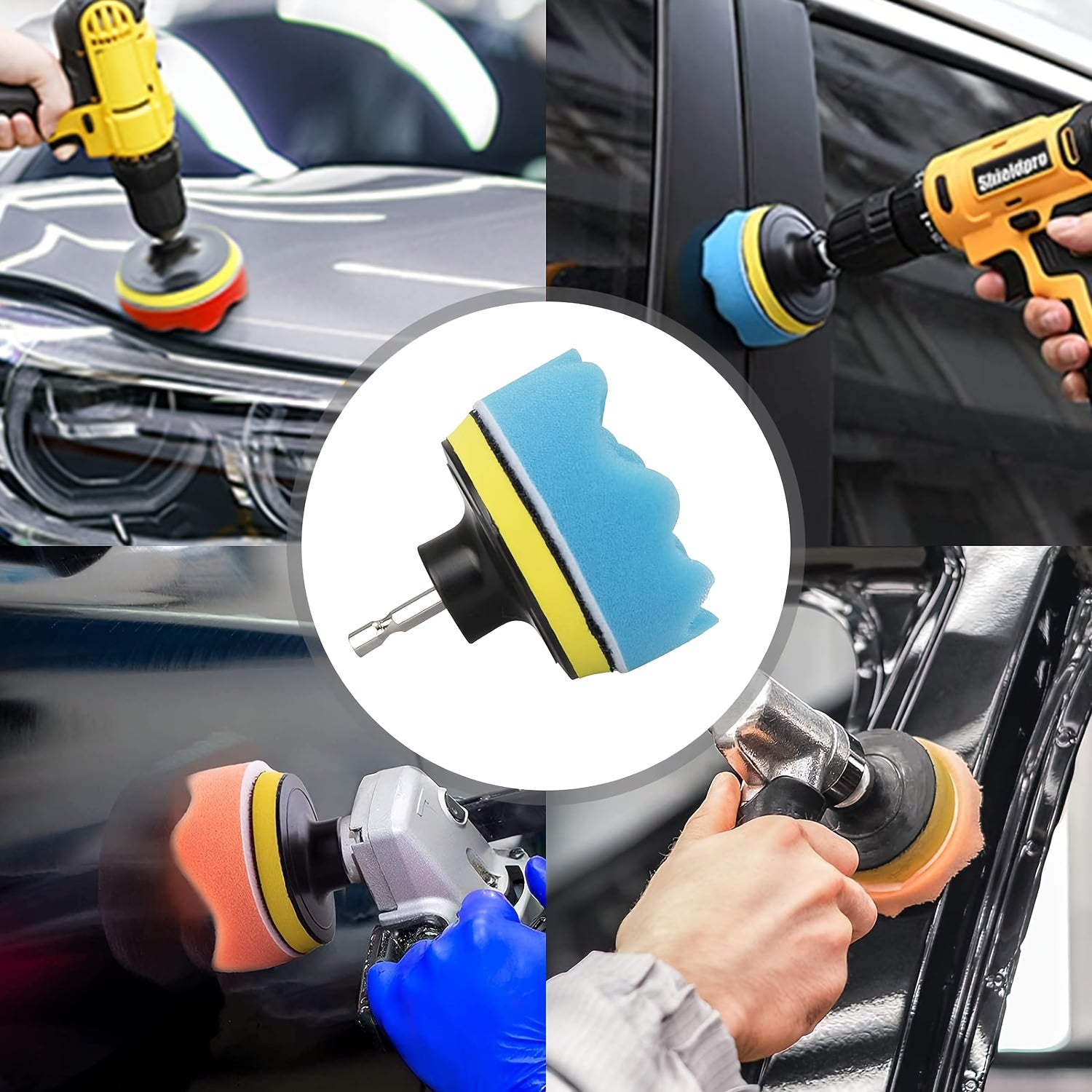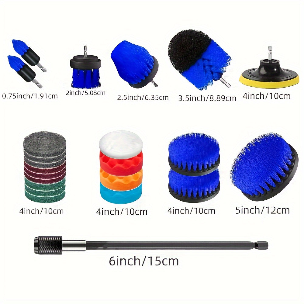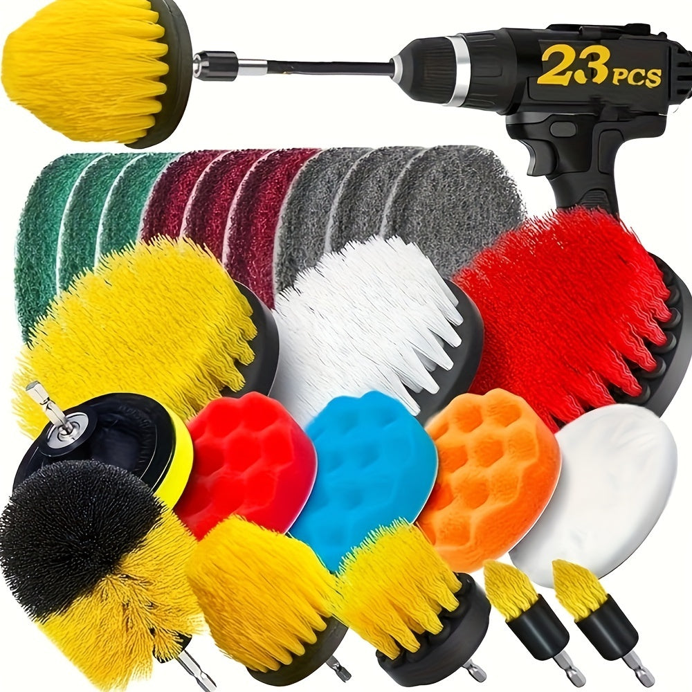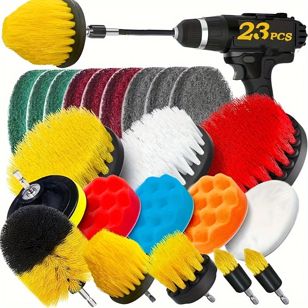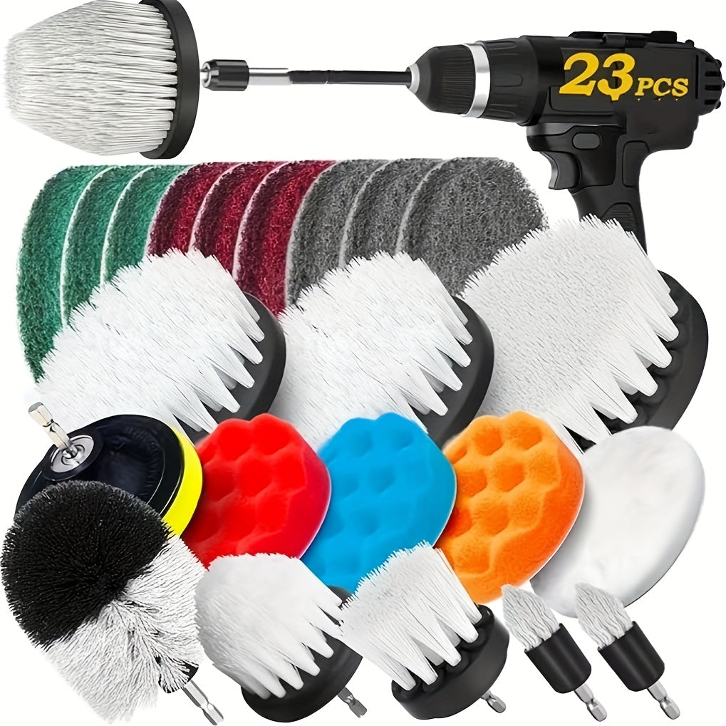 Set di 23 pezzi di spazzole per trapano, tampone per lavaggio e spugna, tampone per lucidatura, spazzola elettrica con prolunga, kit di tamponi per lucidatura auto, prodotti per la pulizia, spazzola per doccia senza trapano elettrico, multicolore opzional