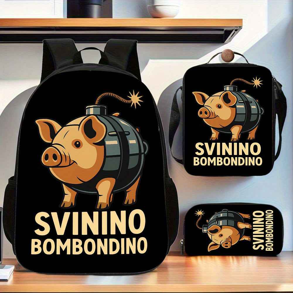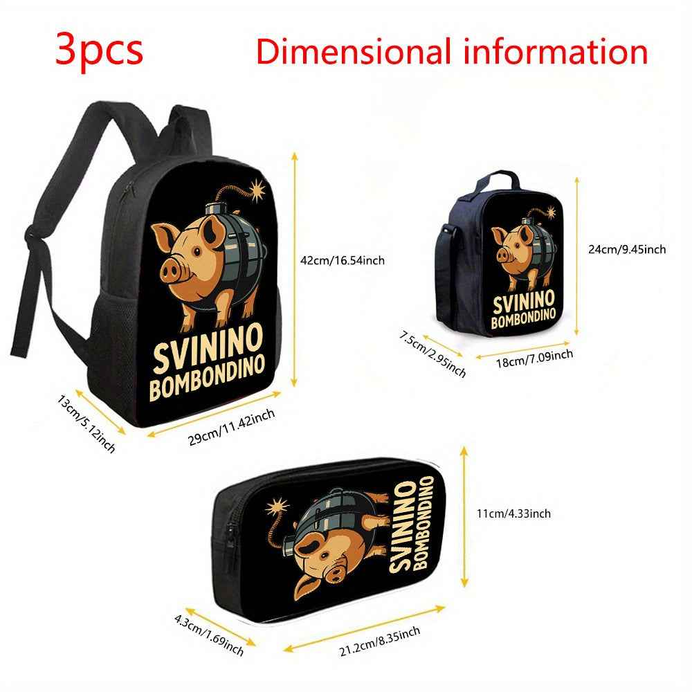 Set di 3 pezzi di Tralalero Tralala&Italian Brainrot, zaino a fumetti di grande capacità, 1*borsa per il pranzo, 1*penne, perfetto per regali di vacanza o compleanno, per la quotidiana andata al lavoro