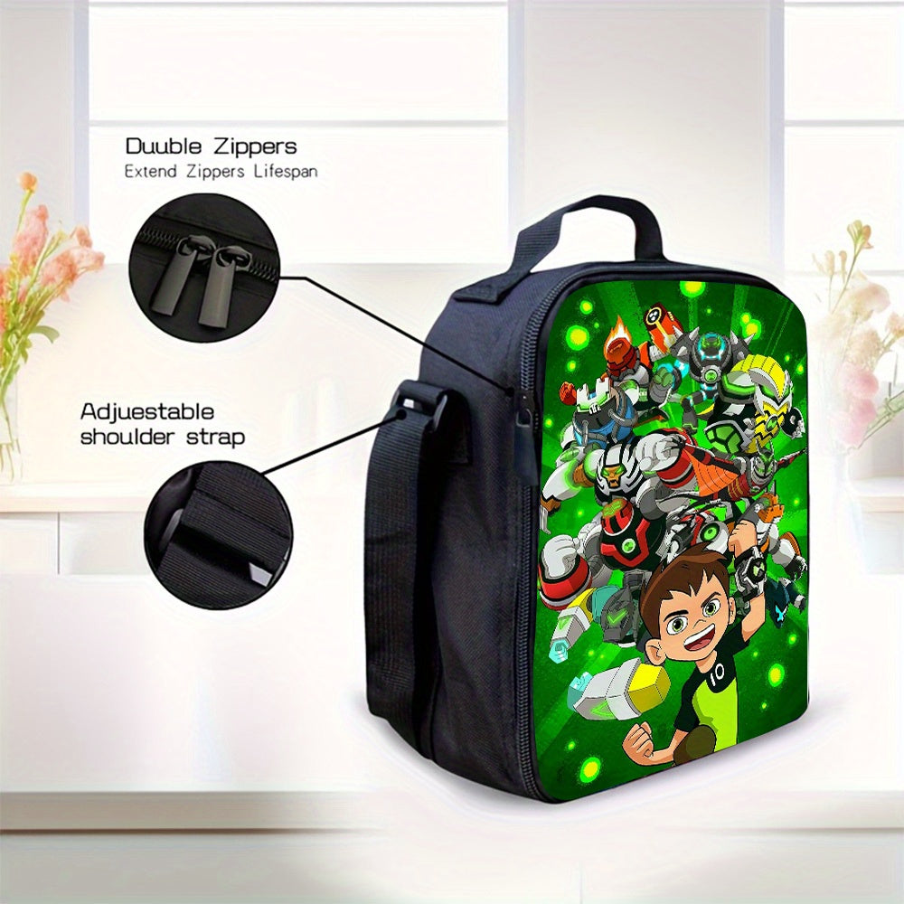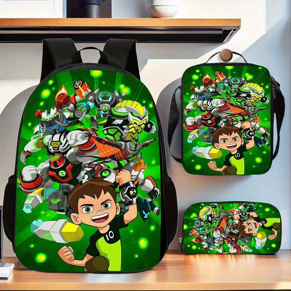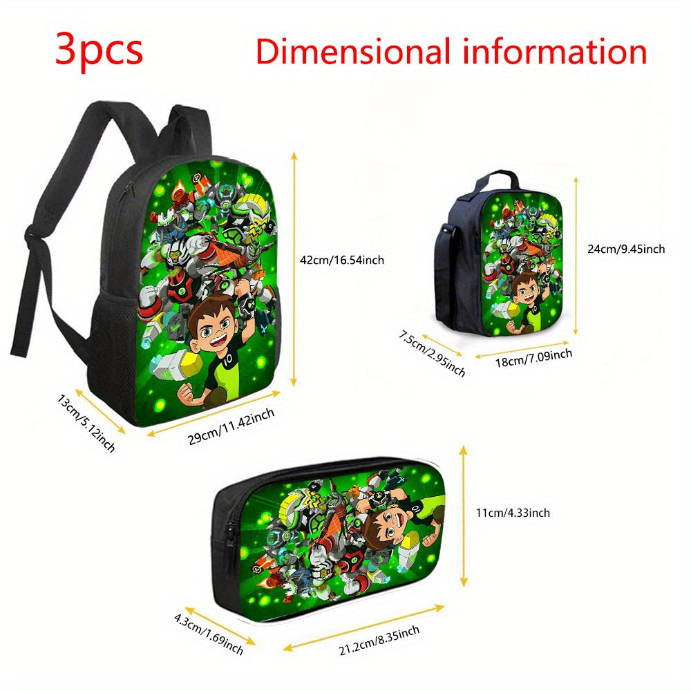Set di 3 pezzi di zaino Ben 10, 1*borsa per il pranzo, 1*penne, organizzatore da viaggio di grande capacità, chiusura con cerniera, perfetto per regali di vacanza o compleanno