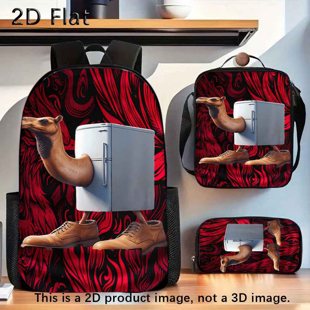 Set di 3 zaini con animali italiani, include un zaino di grande capacità, una penne e una borsa per il pranzo con cerniera e spallacci regolabili, rendendolo un ottimo regalo per viaggi e pendolarismo.
