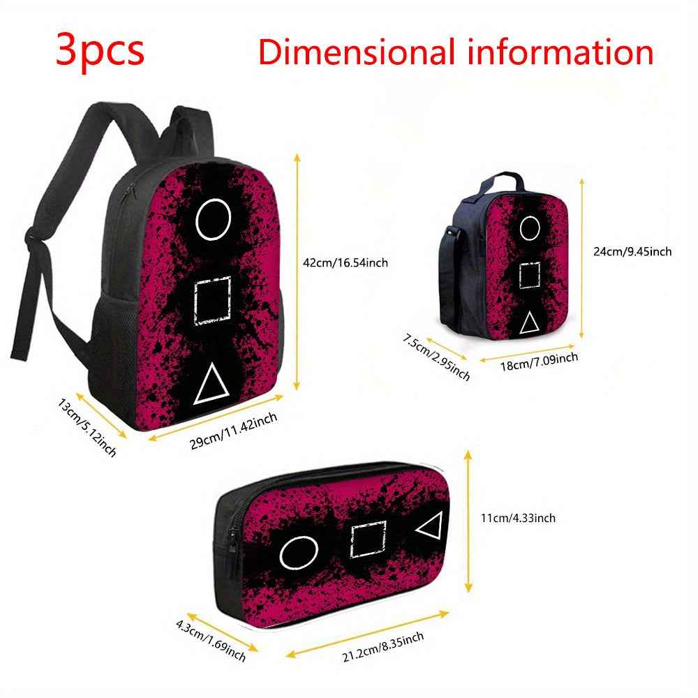 Set di 3 zaini per giochi emozionanti, zaino a grande capacità con cartoni animati, 1*borsa per il pranzo, 1*penne, perfetto per regali di vacanza o compleanno, per la quotidiana andata e ritorno al lavoro