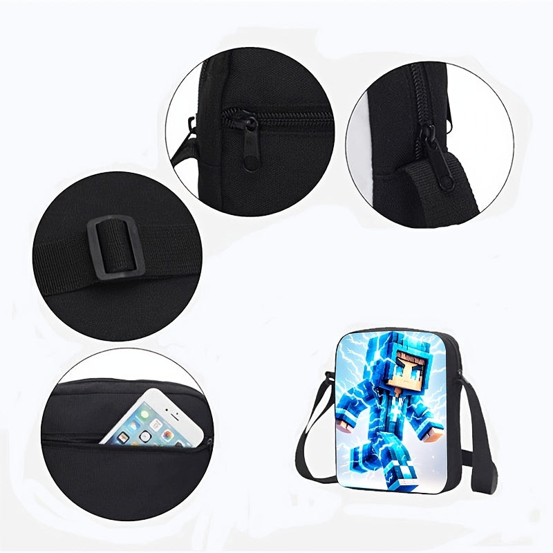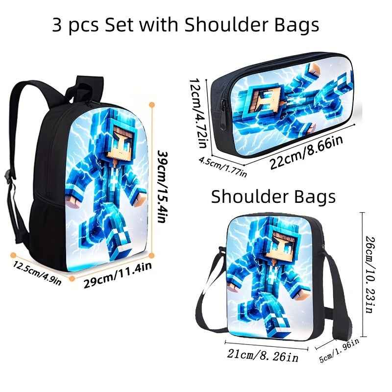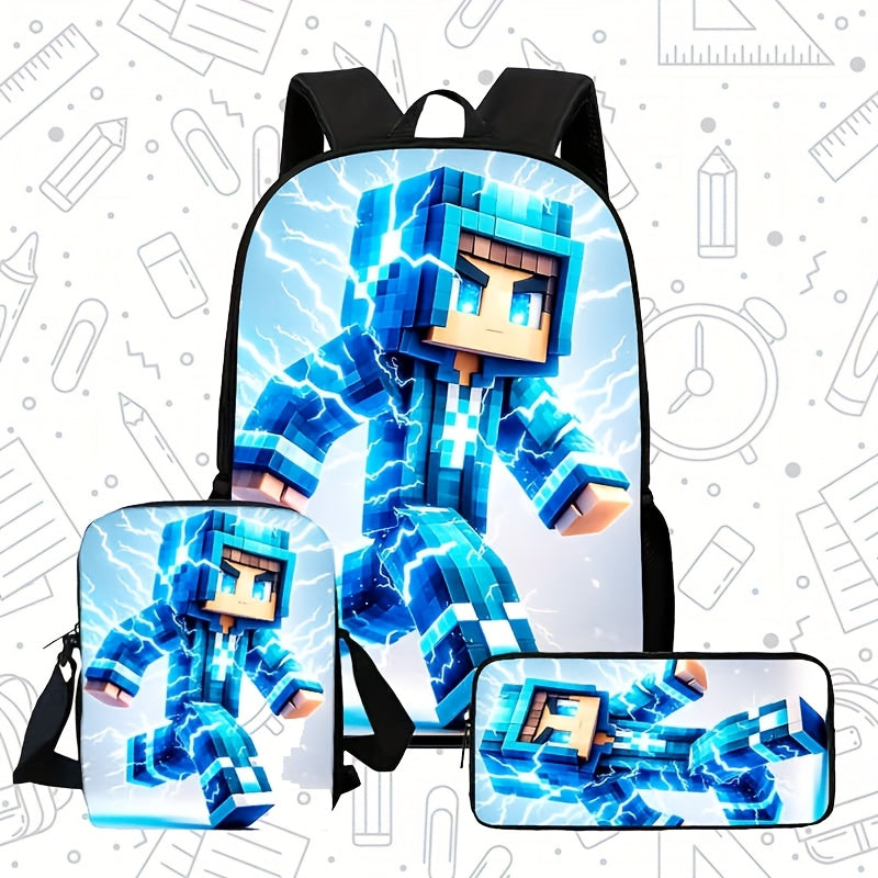 Set di 3 zaini unisex - Design mini artigianale con cinturino regolabile, chiusura a zip e arte pixel vibrante - Perfetto per la scuola, i viaggi e il campeggio - Include zaino, borsa a tracolla e custodia per matite