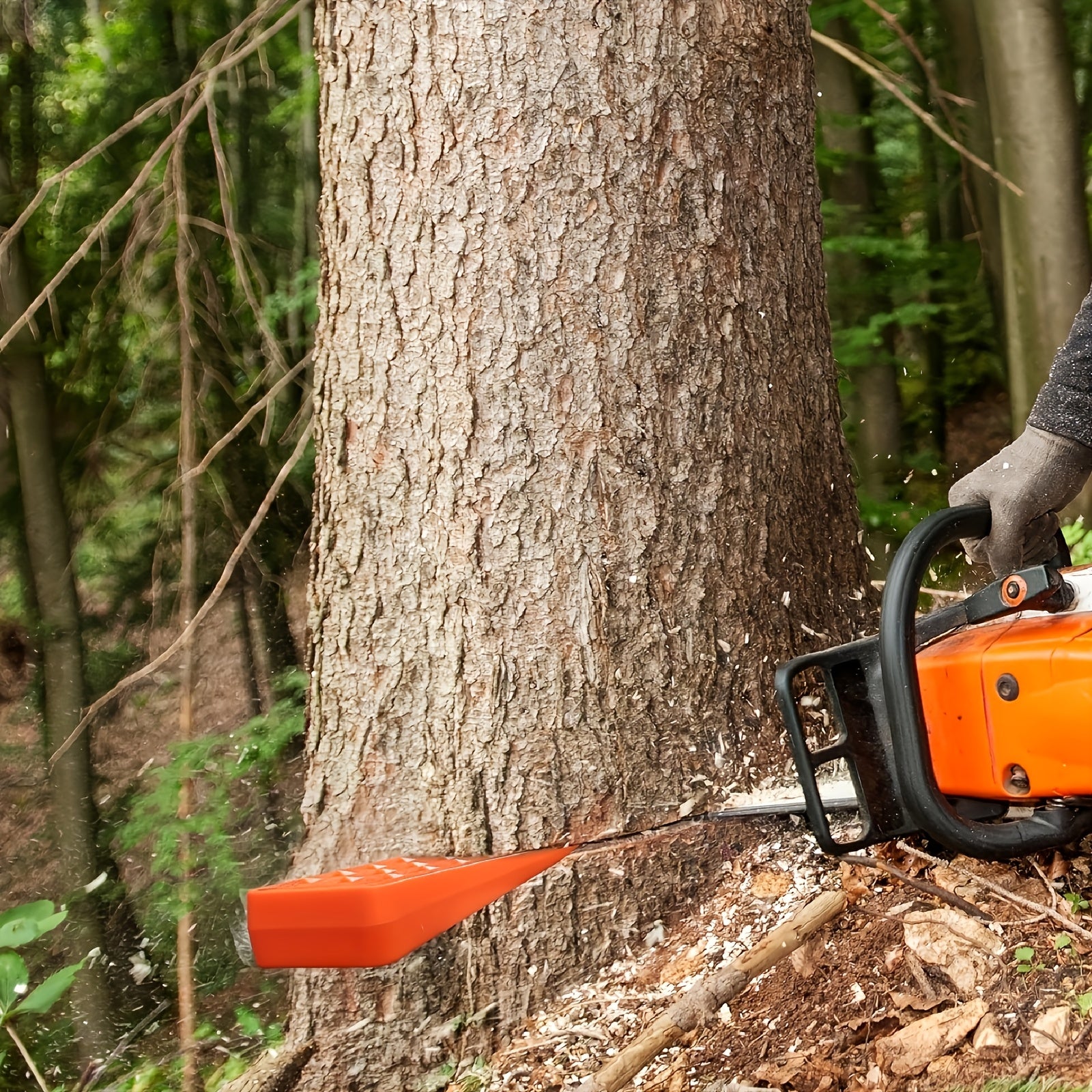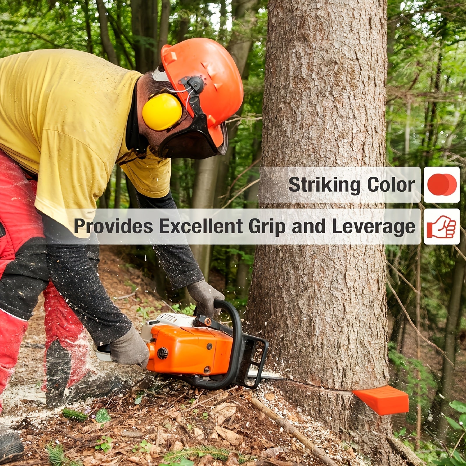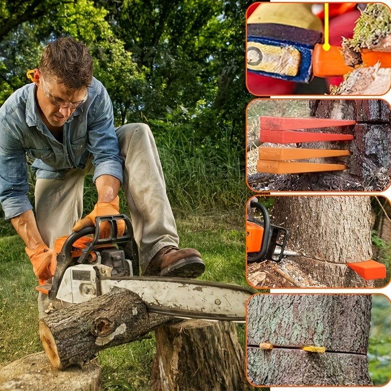 Set di 4 cunei di sicurezza in plastica per motosega - punte antiscivolo da 12,7 cm e 20,32 cm con borsa per il trasporto, giallo e arancione
