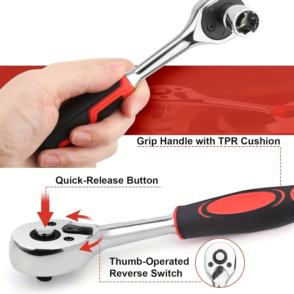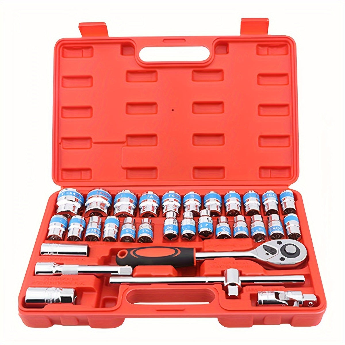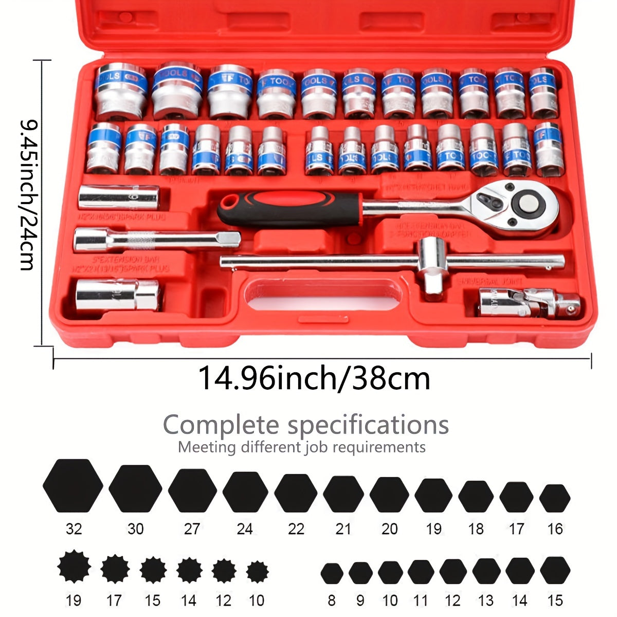 Set di Attrezzi Meccanici da 32 Pezzi e Set di Bussole, Bussole Profonde e Standard con Ingranaggio da 1/2", Set di Chiavi a Cricchetto, Kit di Attrezzi per Riparazioni Automobilistiche Domestica, Chiave Combinata, Chiavi Esagonali, Accessori, Custodia
