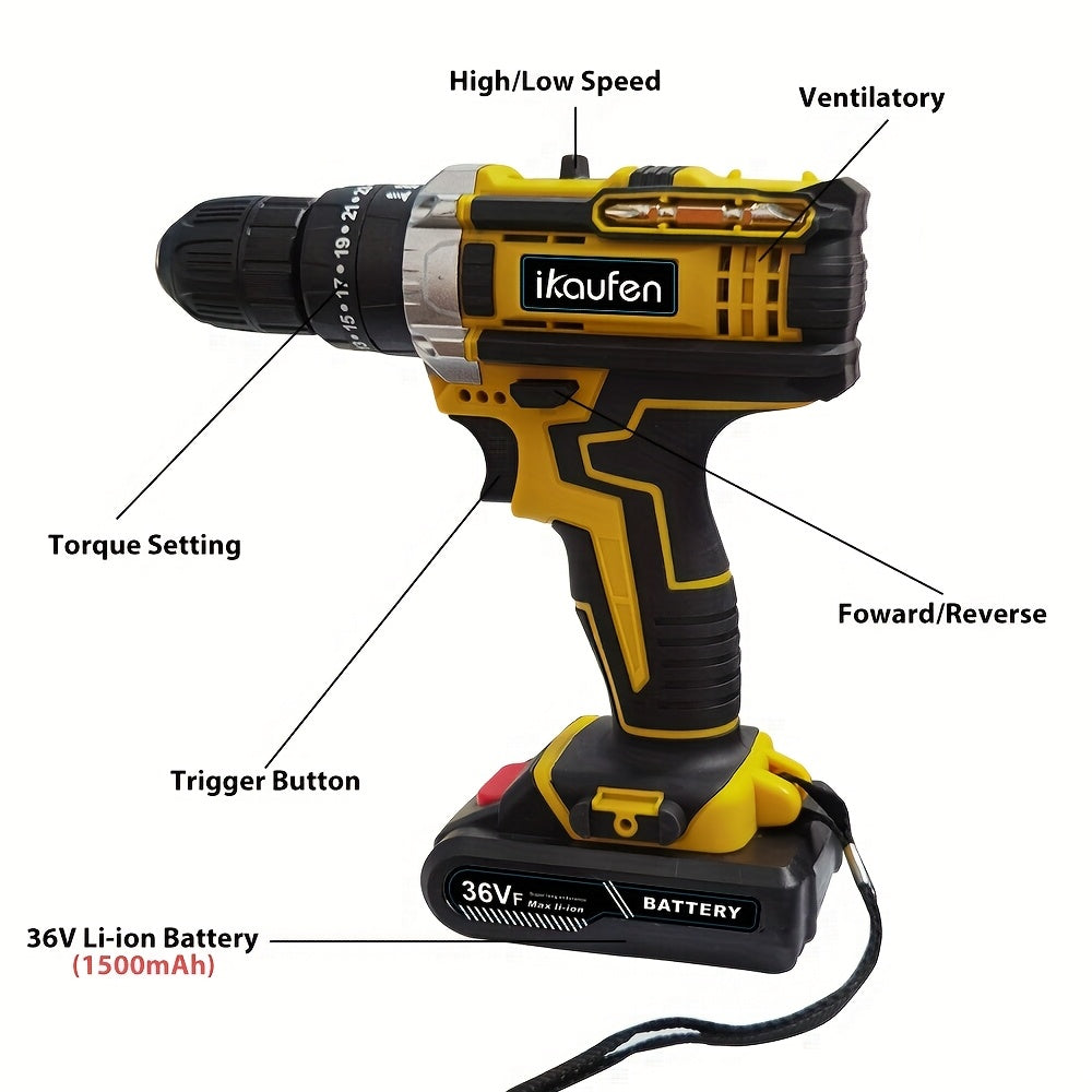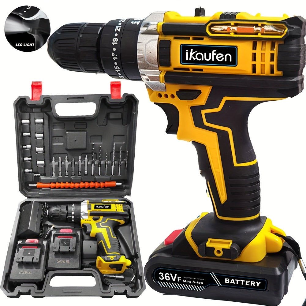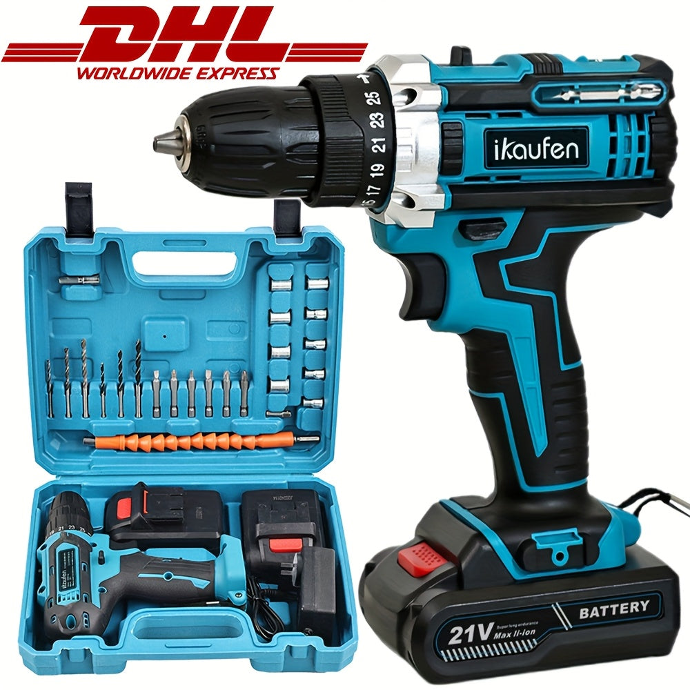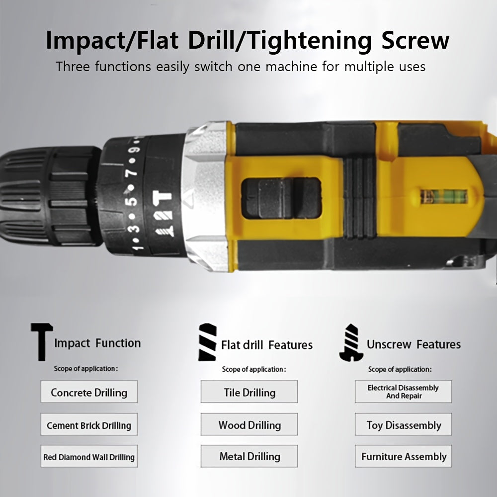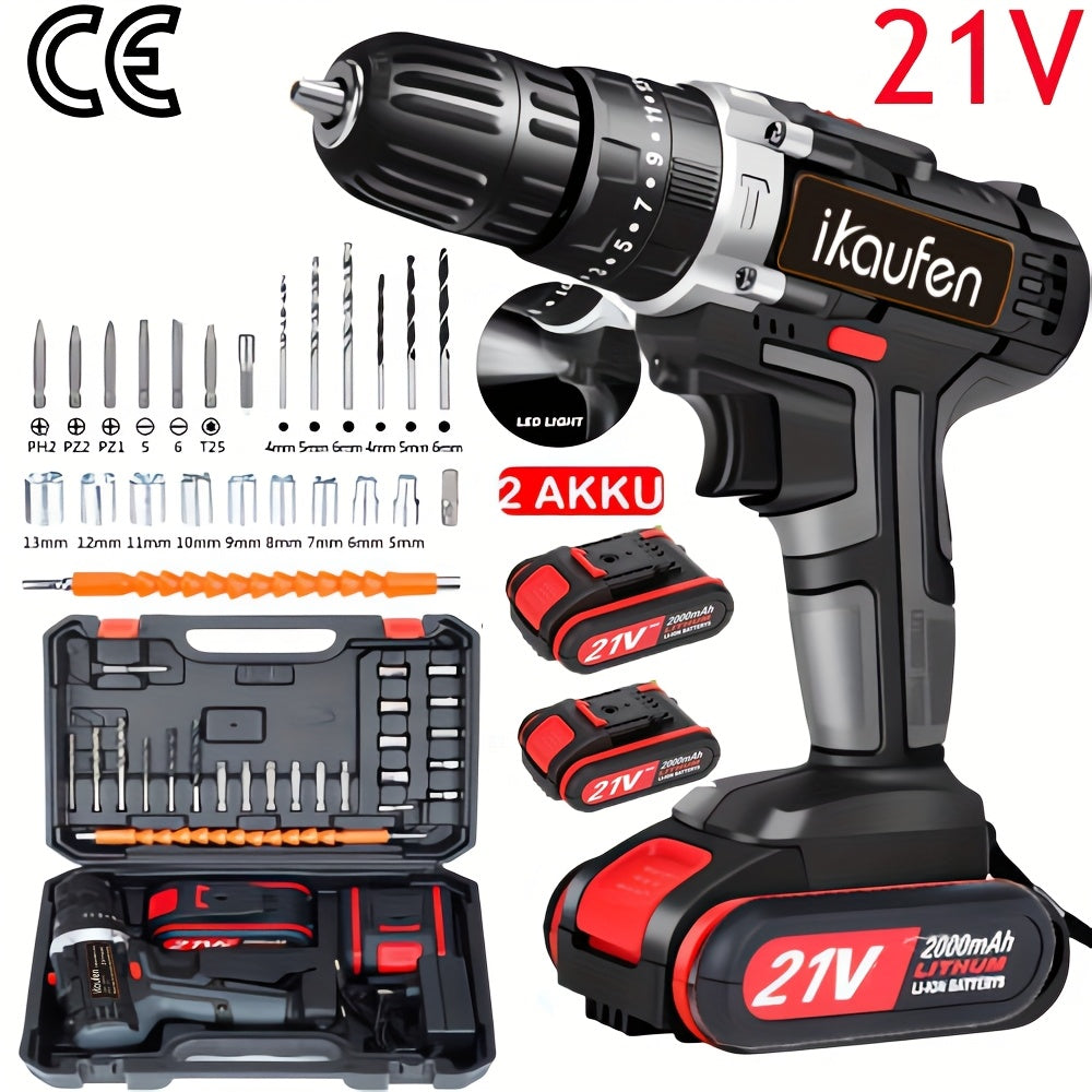 Set di batterie a impatto 3-in-1 21V con 2 batterie di ricambio - Include batterie da 2,0Ah e 1,5Ah, 12 punte da trapano e 8 accessori in custodia, ideale per miglioramenti domestici e progetti fai-da-te, set di strumenti fai-da-te | Set di trapani compat