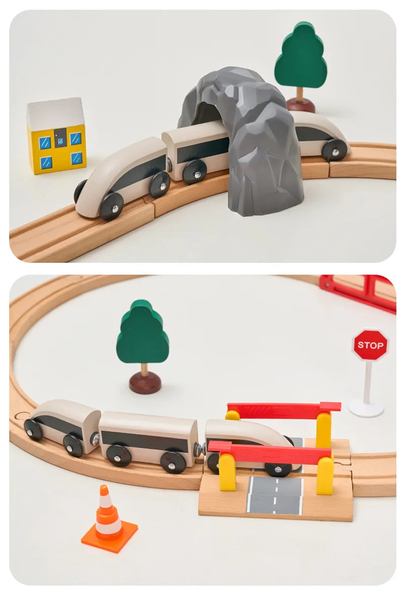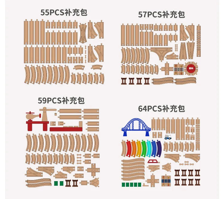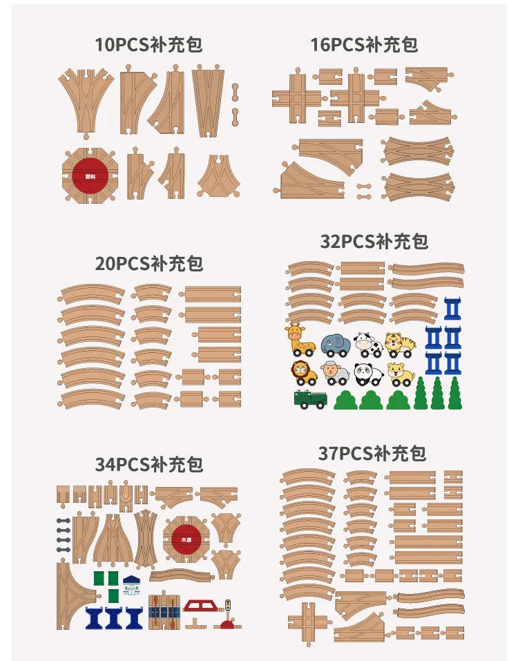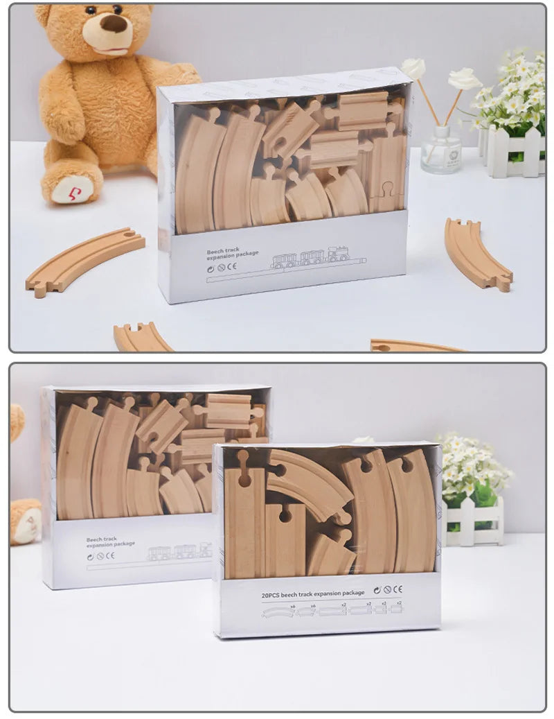 Set di binari ferroviari in legno Pacchetto di espansione Blocchi di costruzione fai-da-te Accessori Tracce adatte per binari in legno Biro Giocattoli educativi per bambini
