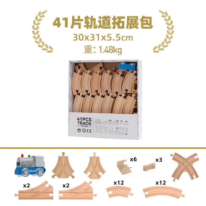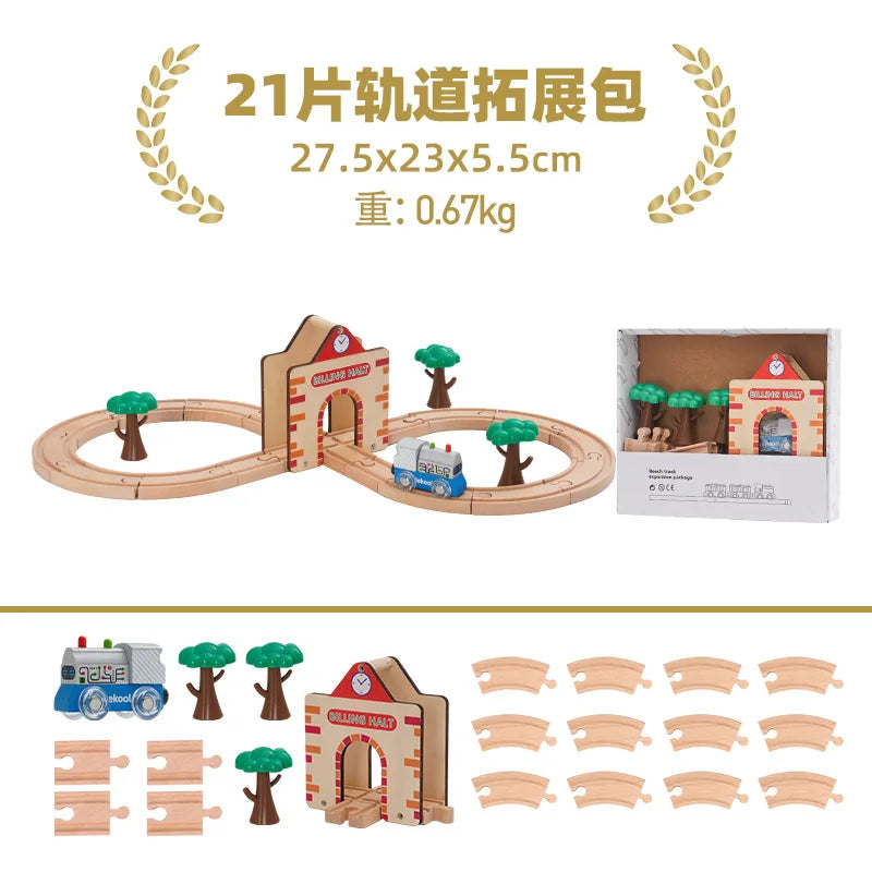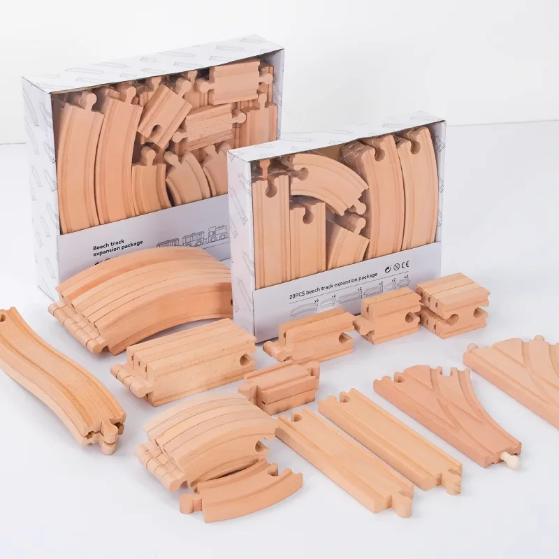 Set di binari ferroviari in legno Pacchetto di espansione Blocchi di costruzione fai-da-te Accessori Tracce adatte per binari in legno Giocattoli educativi per bambini